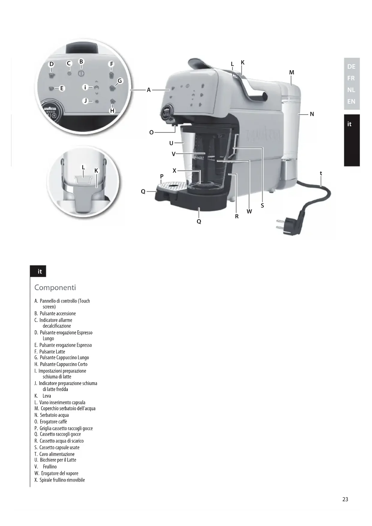 Desideriamo offrirLe alcune informazioni pratiche sulle funzioni e sull'uso della Sua nuova macchina per caffe in capsule con montalatte.