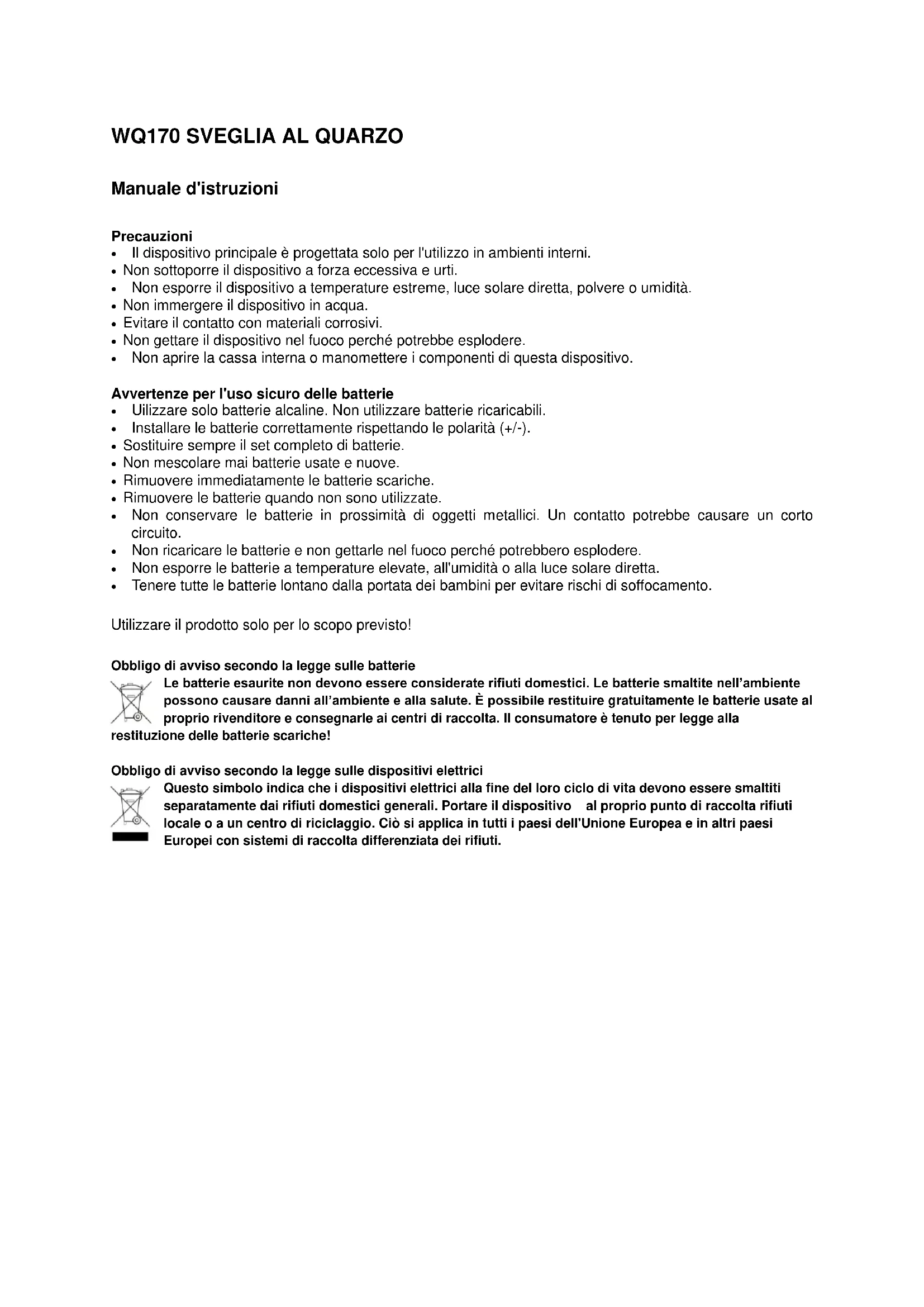 MANUALE UTENTE WQ170 TECHNOLINE