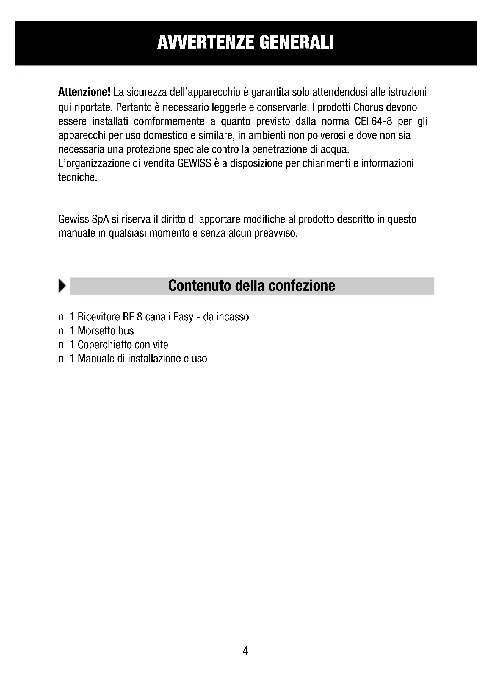 Gewiss SpA si riserva il diritto di apportare modifiche al prodotto descritto in quello manuale in qualsiasi momento e alla alcun preavviso.