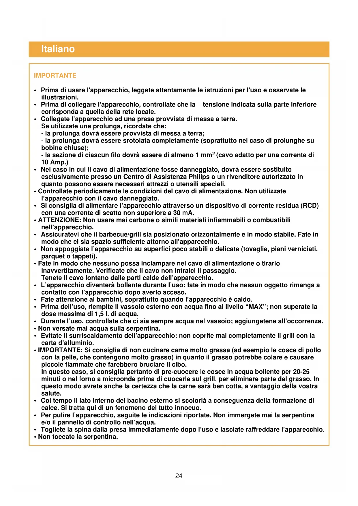 Non versate mai acqua sulla serpentina. - Evitate il surriscaldamento dell'apparecchio: non coprite mai completeness il grill con la carta d'alluminio.