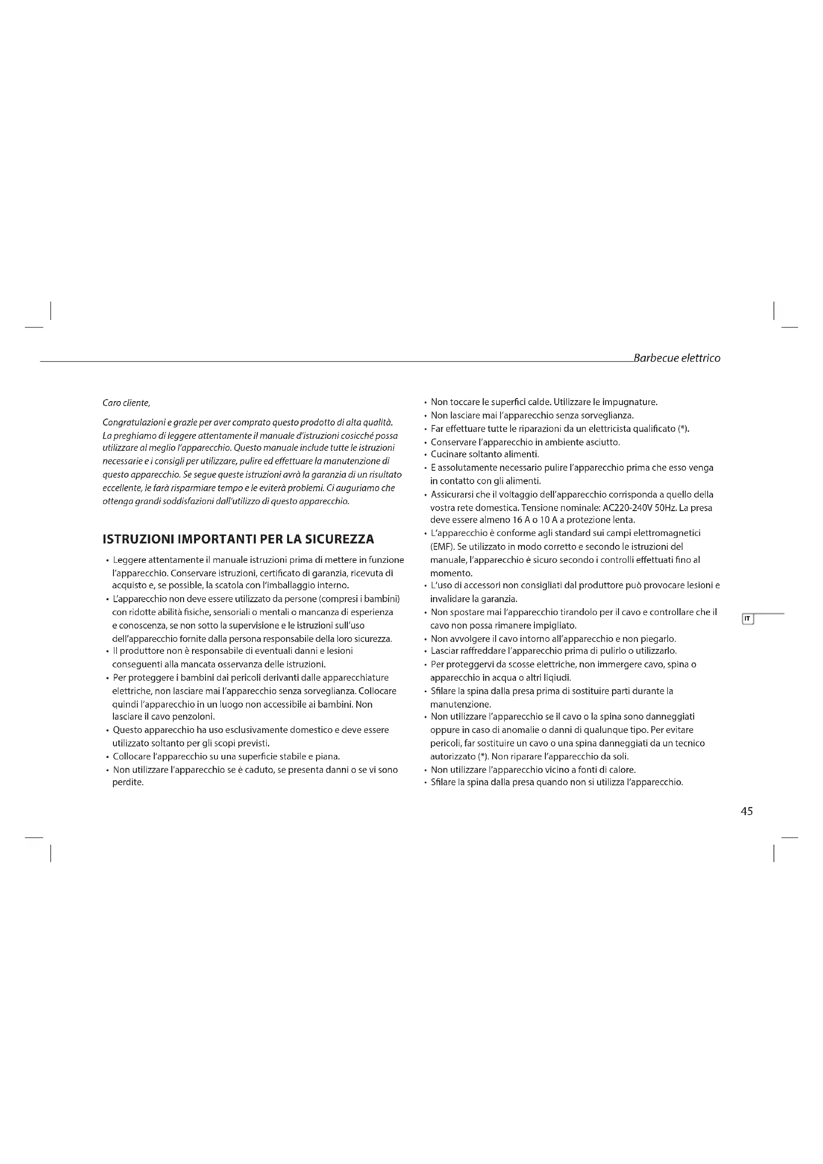 - Attenzione: non coprire mai la griglia con foglio in alluminio, piatti per barbecue o altri articoli, in quanto la conseguente formazione di calore potrebbe rovinare completamente la griglia.