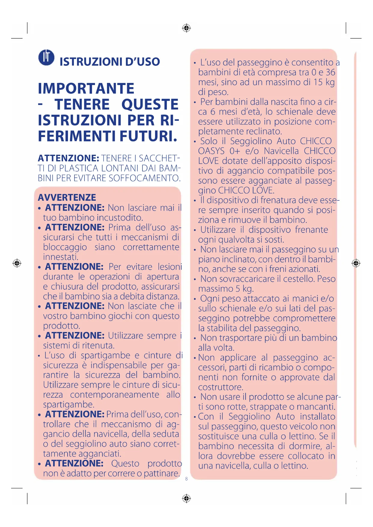 8. ATTENZIONE: per l’utilizzo con bambini dalla nascita no