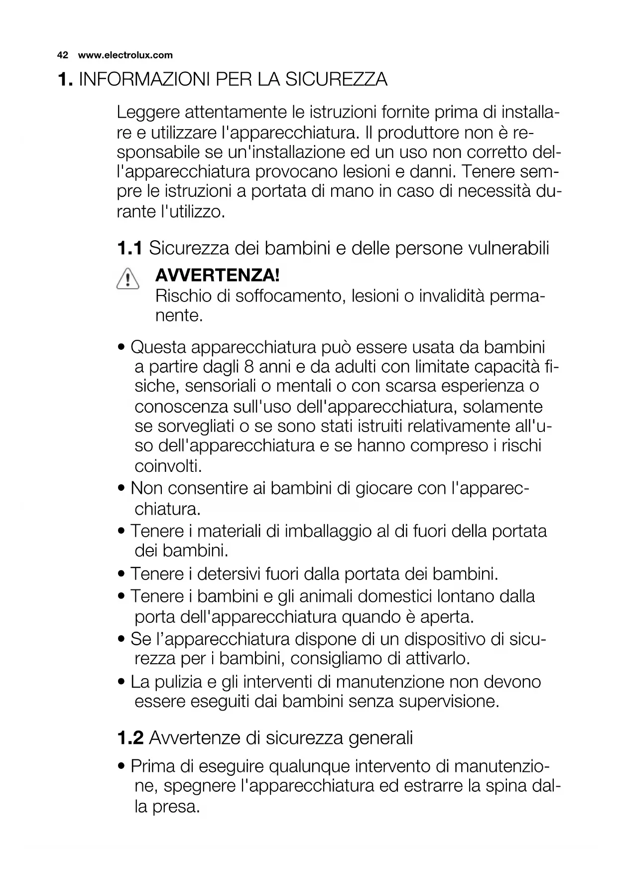 1.2 Avvertenze di sicurezza generali