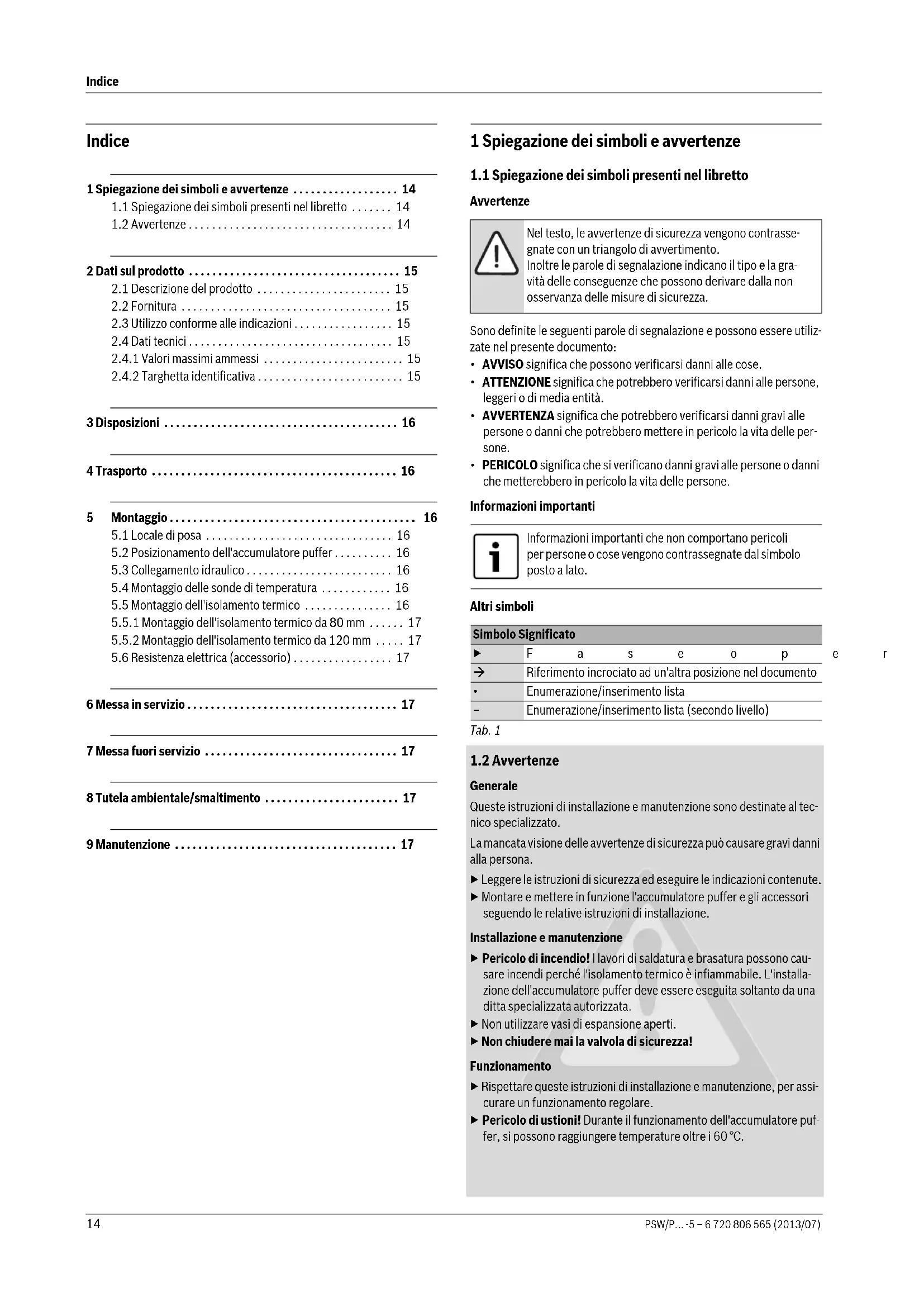 1.1 Spiegazione dei simboli presenti nel libretto ..... 14