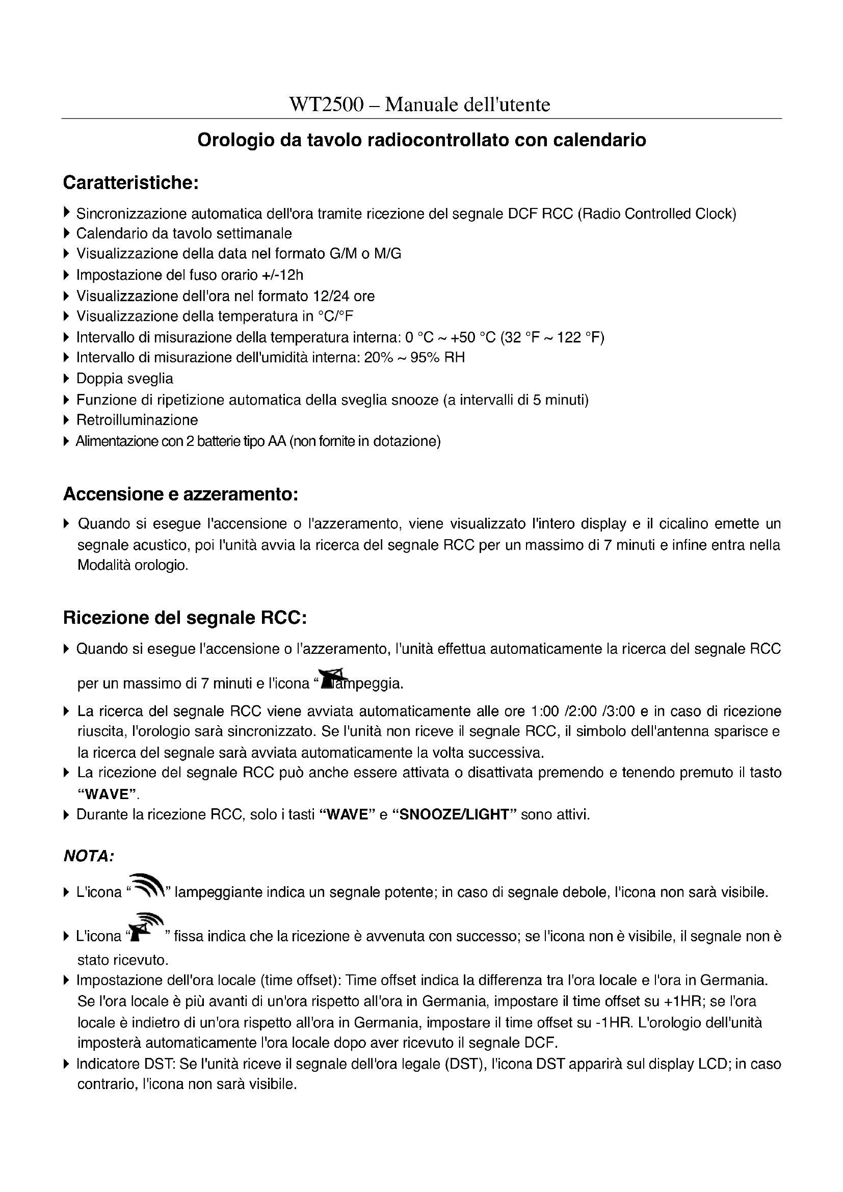 MANUALE UTENTE WT 2500 TECHNOLINE