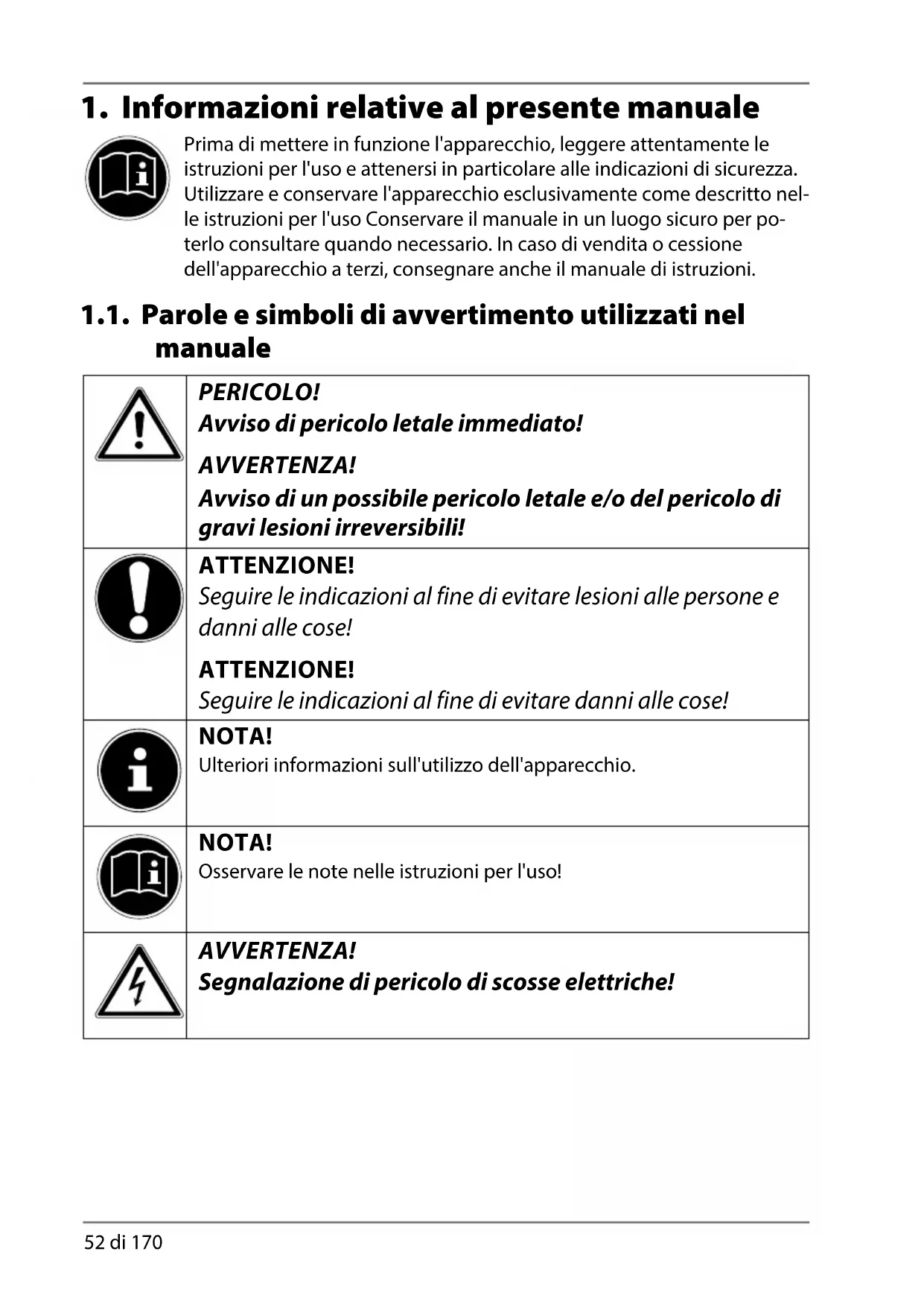 1.1. Parole e symboli di avvertimento utilizzati nel manuale