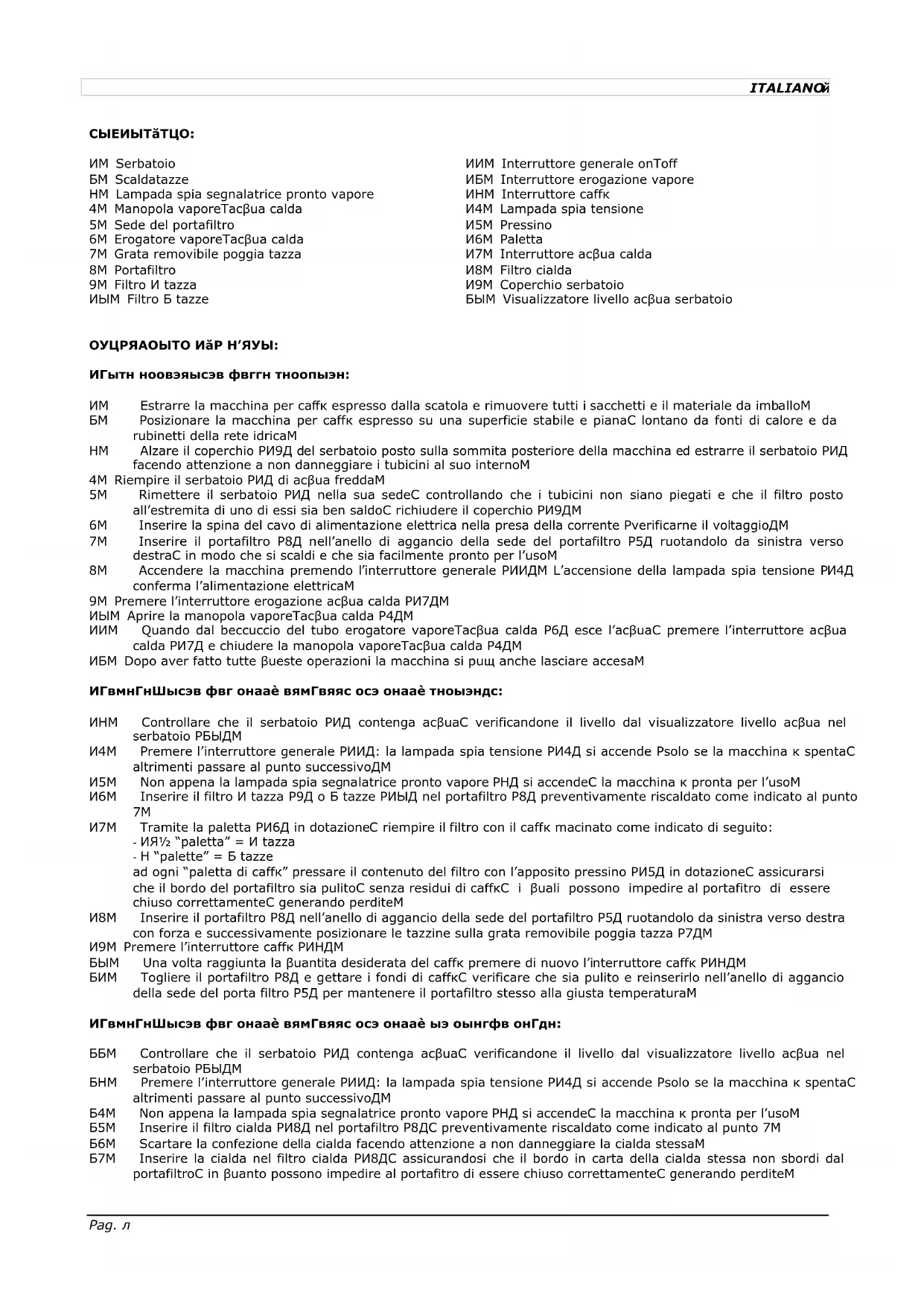 portafiltro, in quanto possono impedire al portafitro di essere chiuso correttamente, generando perdite.Pag. 3 ITALIANO
