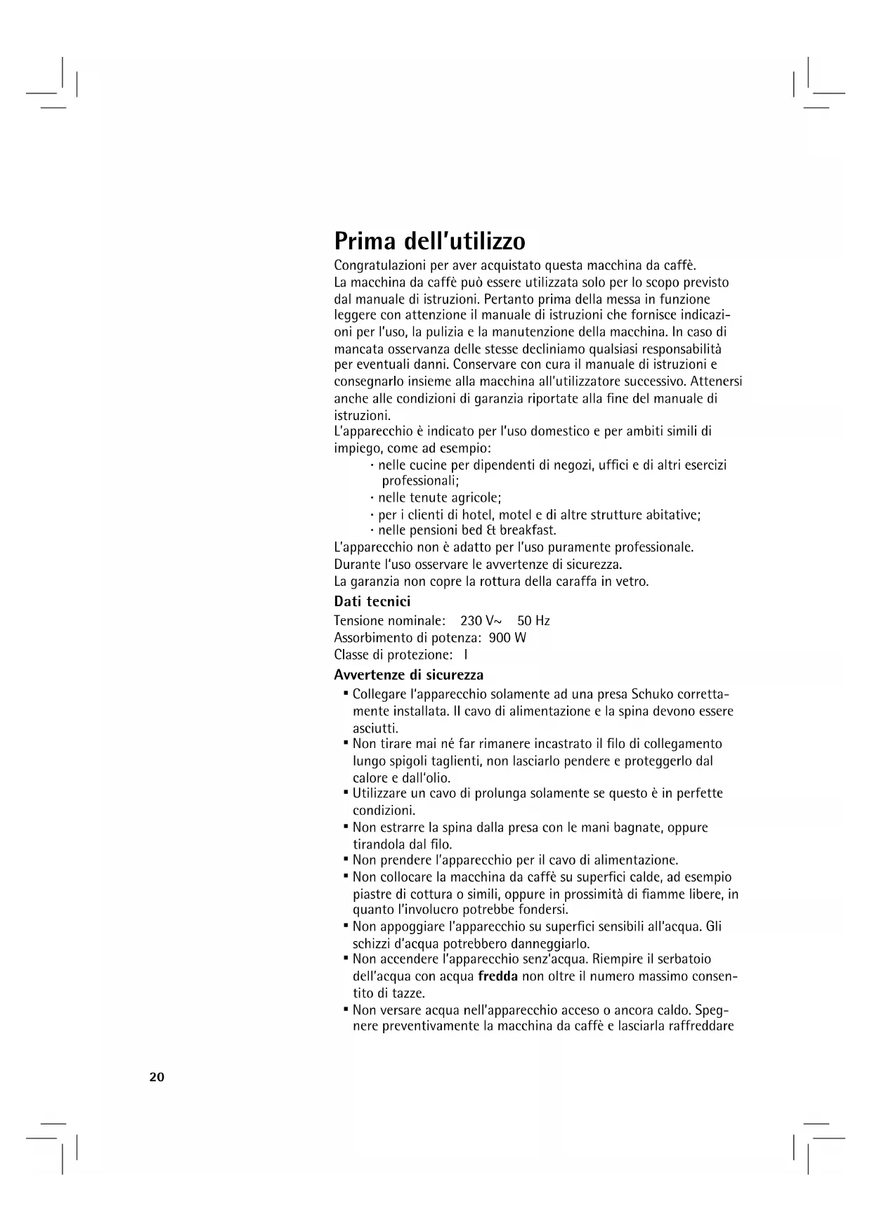 - Il costruttore declina qualsiasi responsabilità per eventuali danni dovuti all‘utilizzo dell’apparecchio con finalità diverse, al suo uti- lizzo errato, alla mancata osservanza delle avvertenze di decalcifi- cazione o ad una riparazione effettuata non correttamente. In detti casi sono escluse le prestazioni di garanzia.