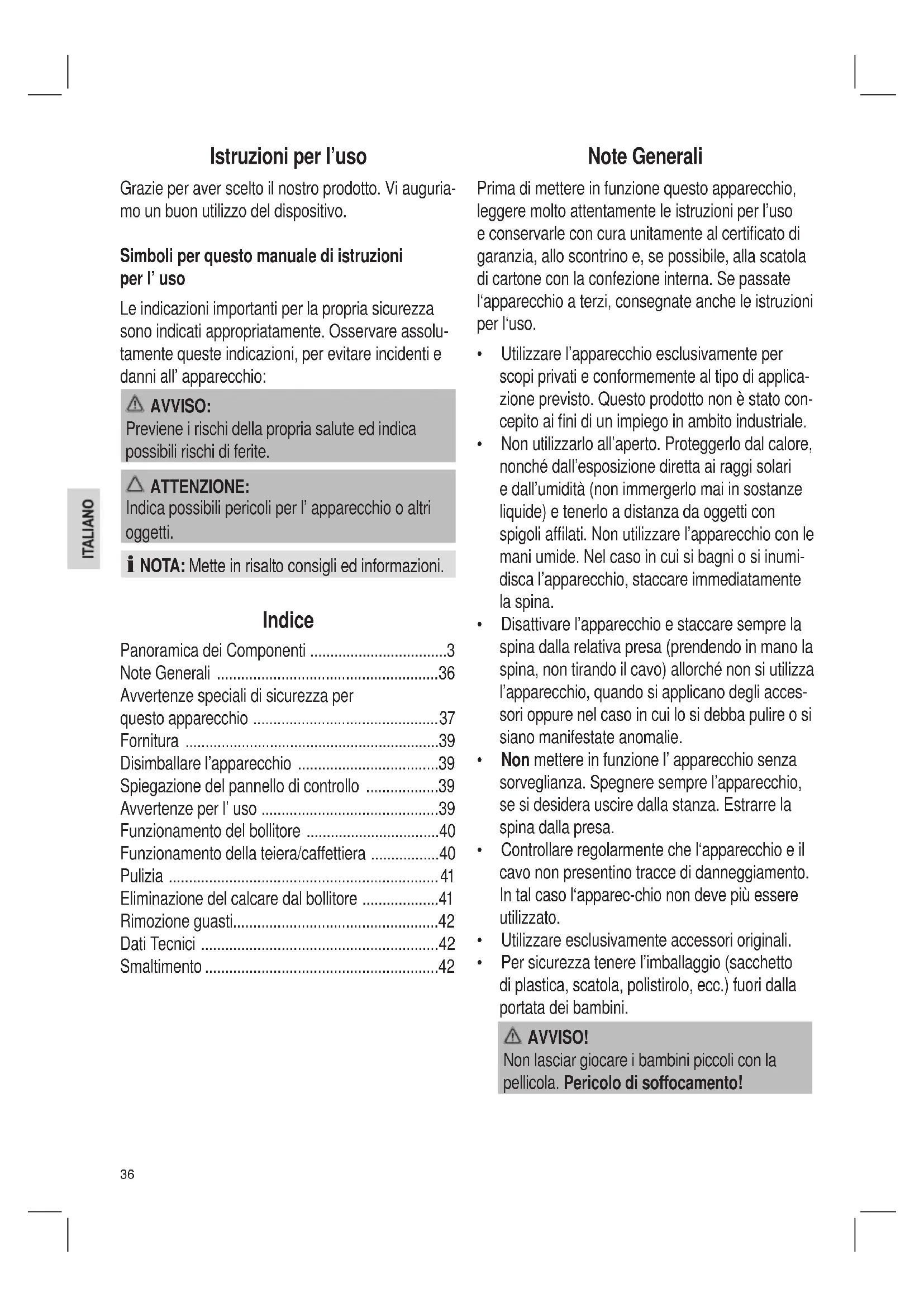 - Ilbollitoreèdestinatoalriscaldamentoeallabollituradibevande. Nonutilizzarel’apparecchioperriscaldarealtriliquidioalimenti.