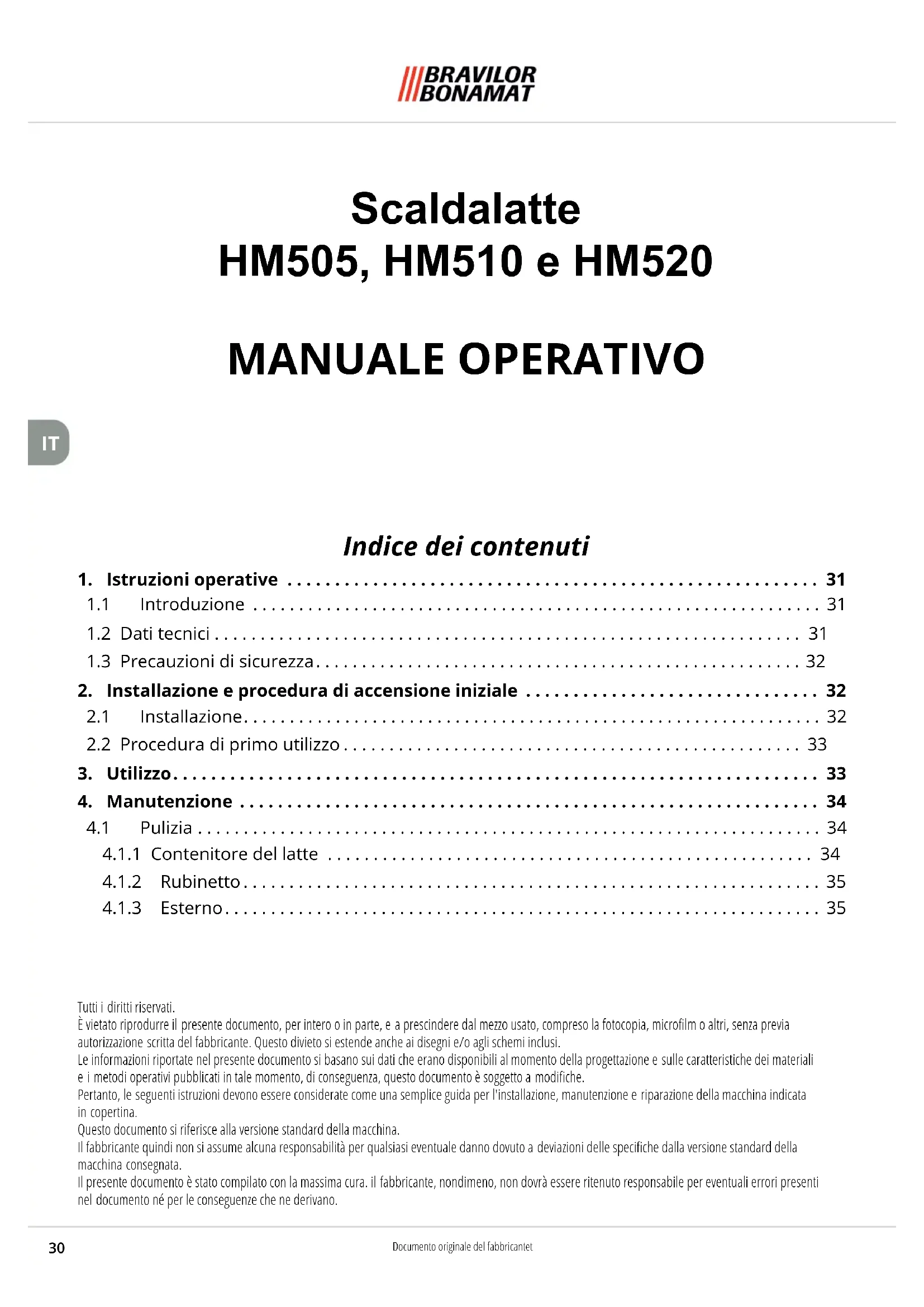 MANUALE UTENTE HM520 Bravilor Bonamat