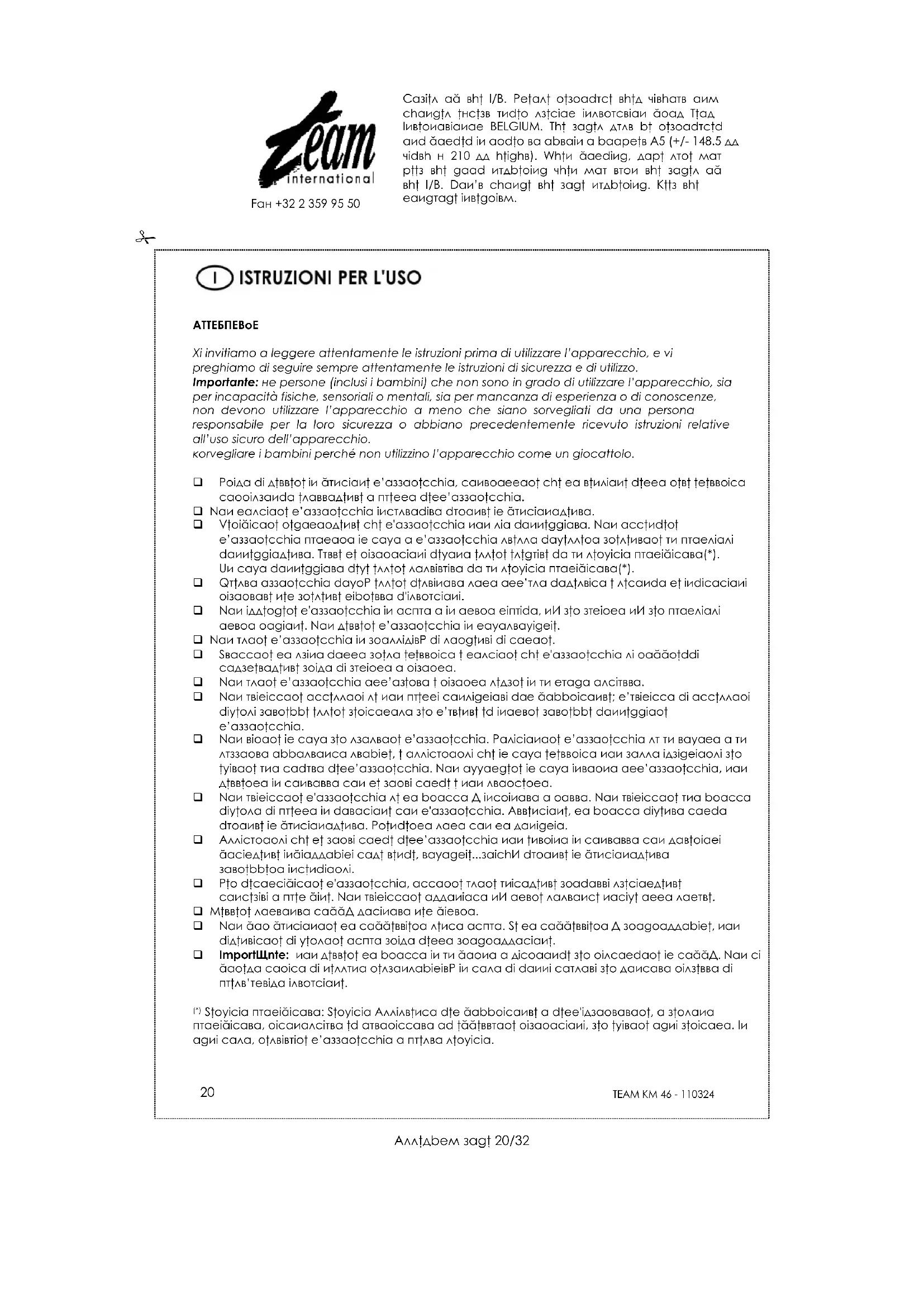 Trova gratuitamente il manuale del dispositivo KM 46 TEAM in formato PDF.