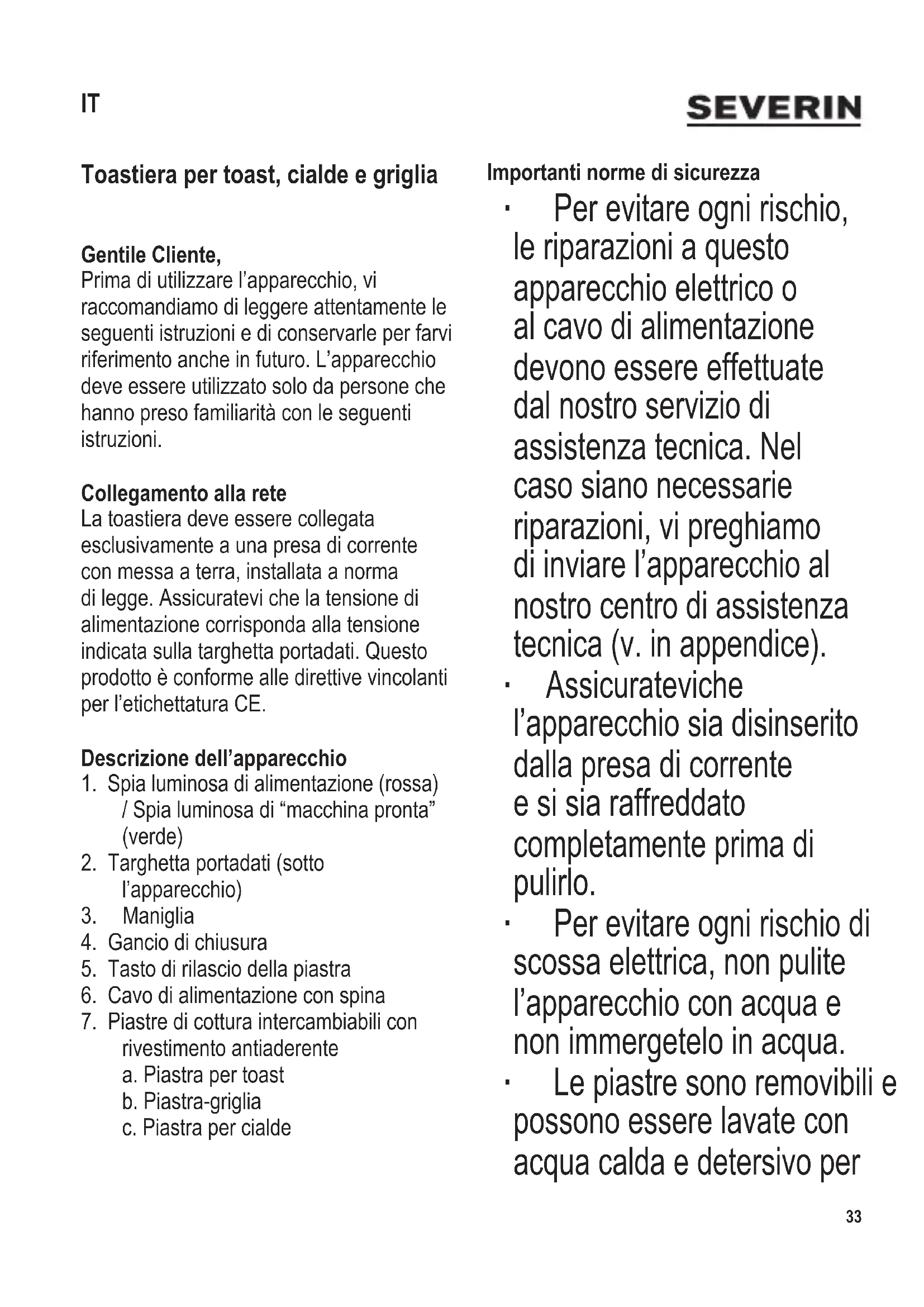 SA 2968 - Pinza per croque monsieur SEVERIN - Manuale utente e istruzioni gratuiti