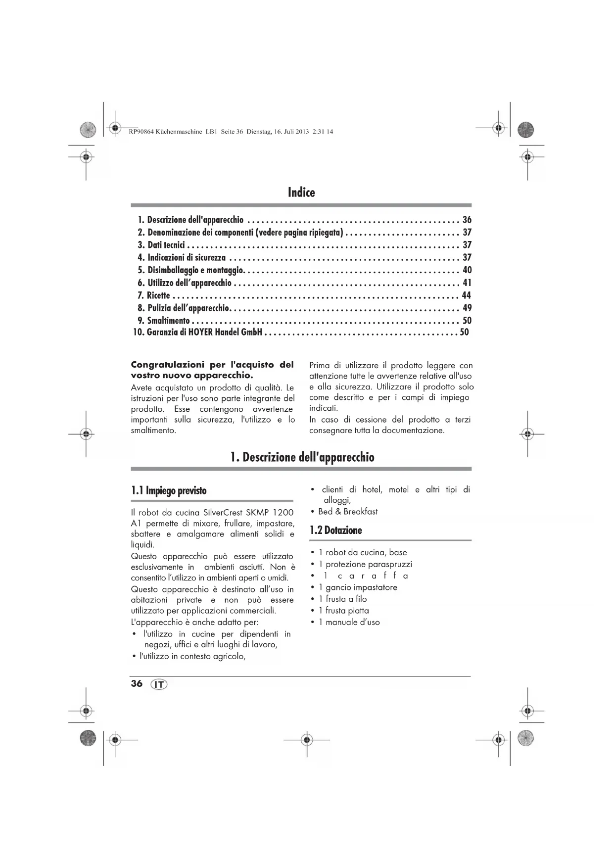 - 1 manuale d’uso RP90864 Küchenmaschine LB1 Seite 36 Dienstag, 16. Juli 2013 2:31 14SKMP 1200 A1 37