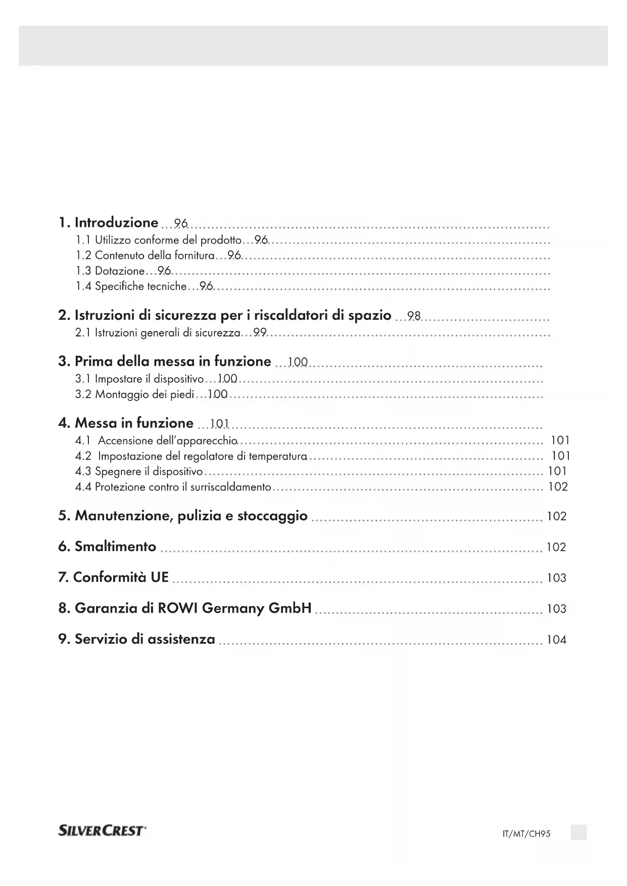 9. Servizio di assistenza 104IT/MT/CH96
