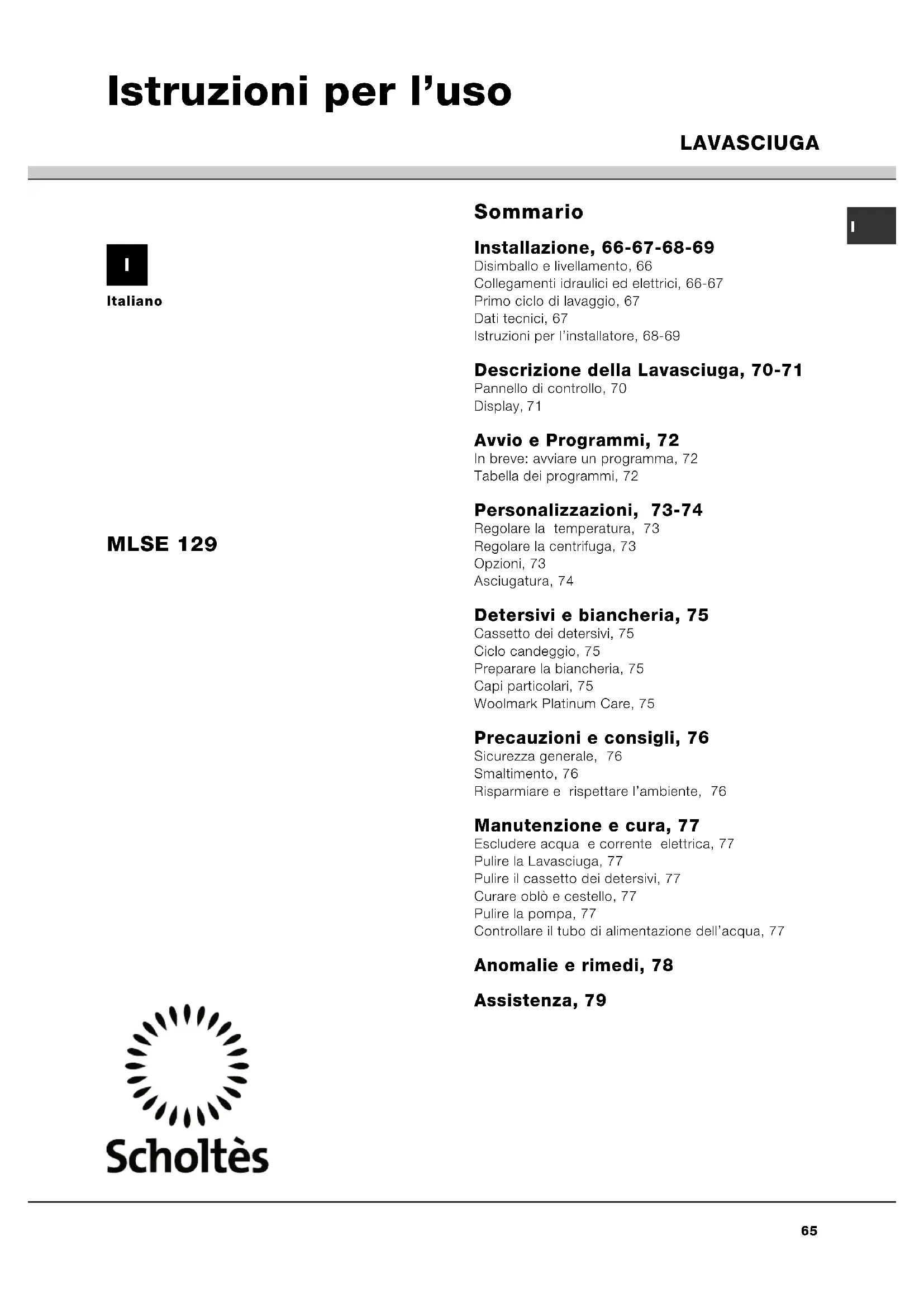 MLSE 129 - Lavatrice SCHOLTES - Manuale utente e istruzioni gratuiti
