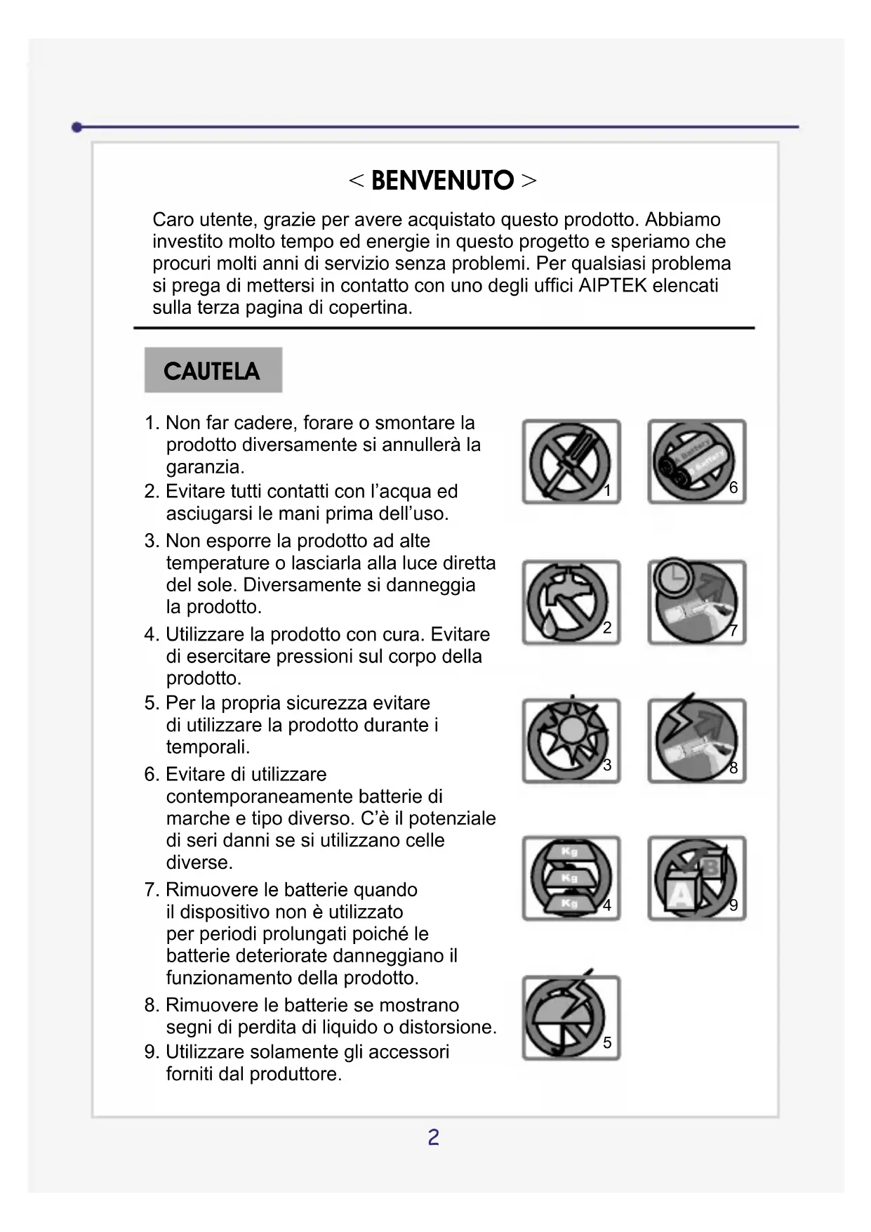 1. Non far cadere, forare o smontare la