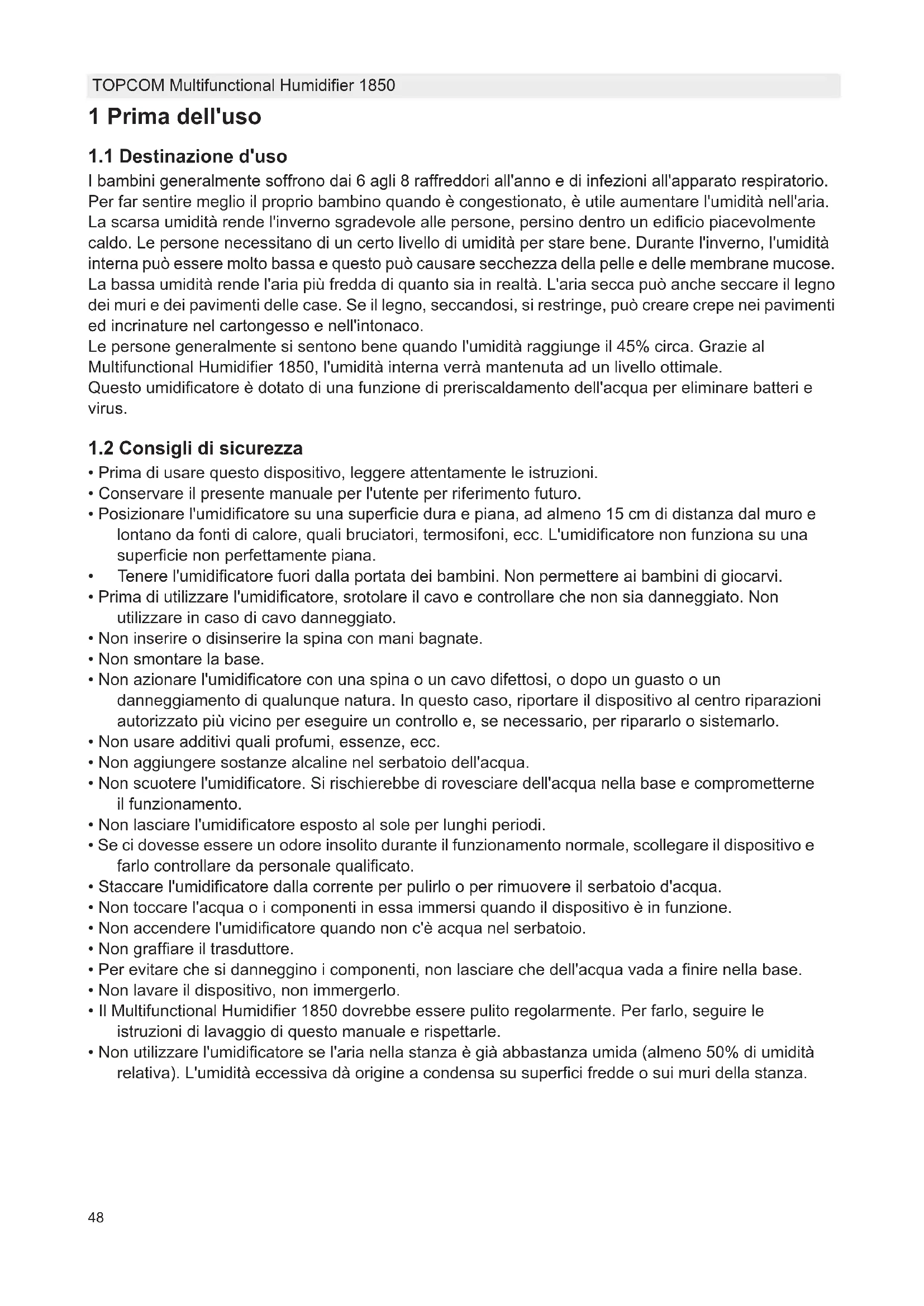 MANUALE UTENTE Multifunctional Humidifier 1850 TOPCOM