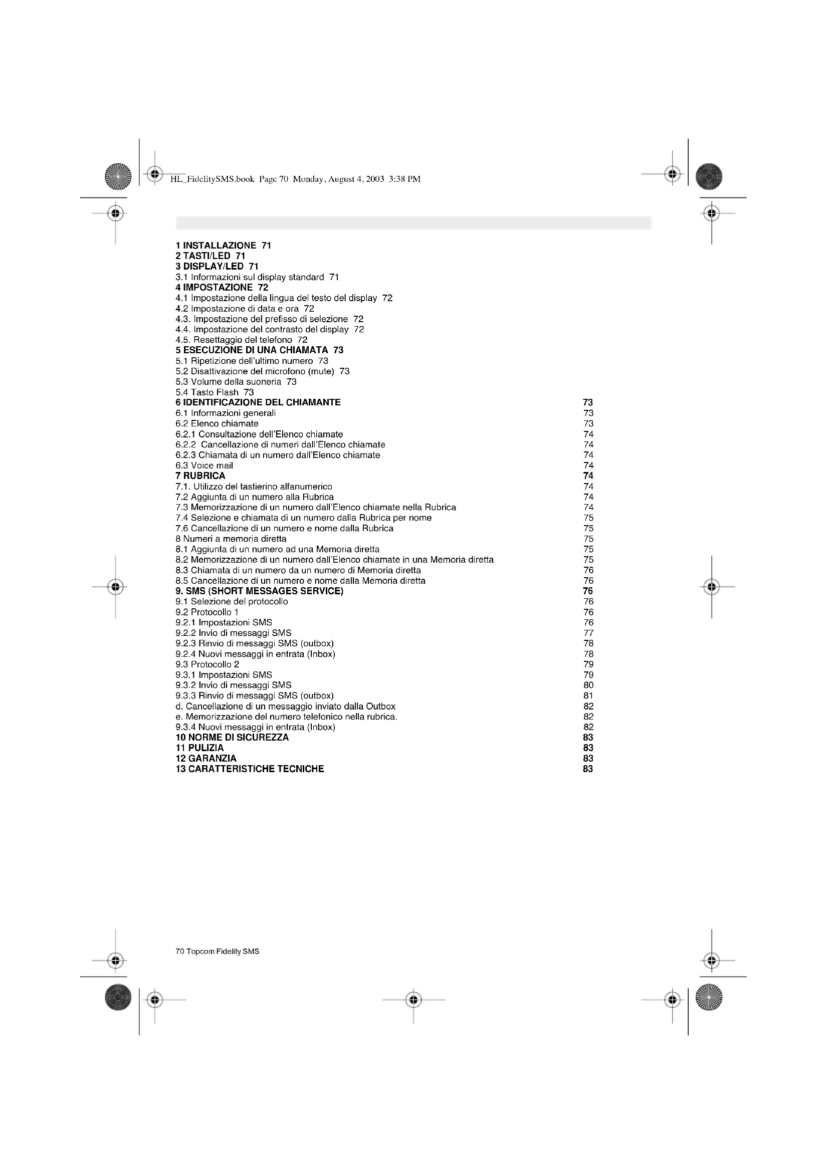 - Premere due volte il tasto Esc per uscire dal menu. HL_FidelitySMS.book Page 72 Monday, August 4, 2003 3:38 PMTopcom Fidelity SMS 73 ITALIANO