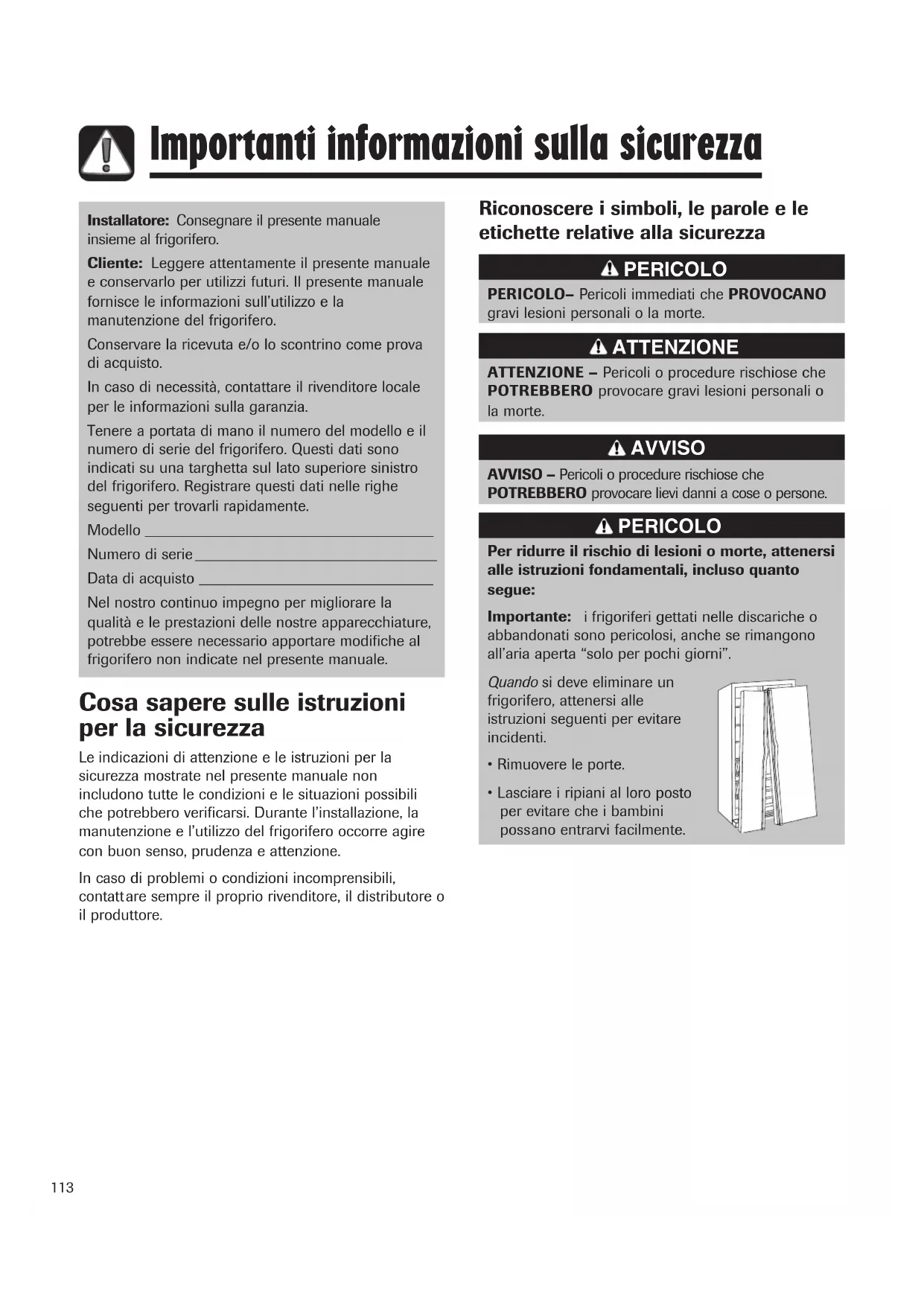 Important informazioni sulla sicurezza 113-114