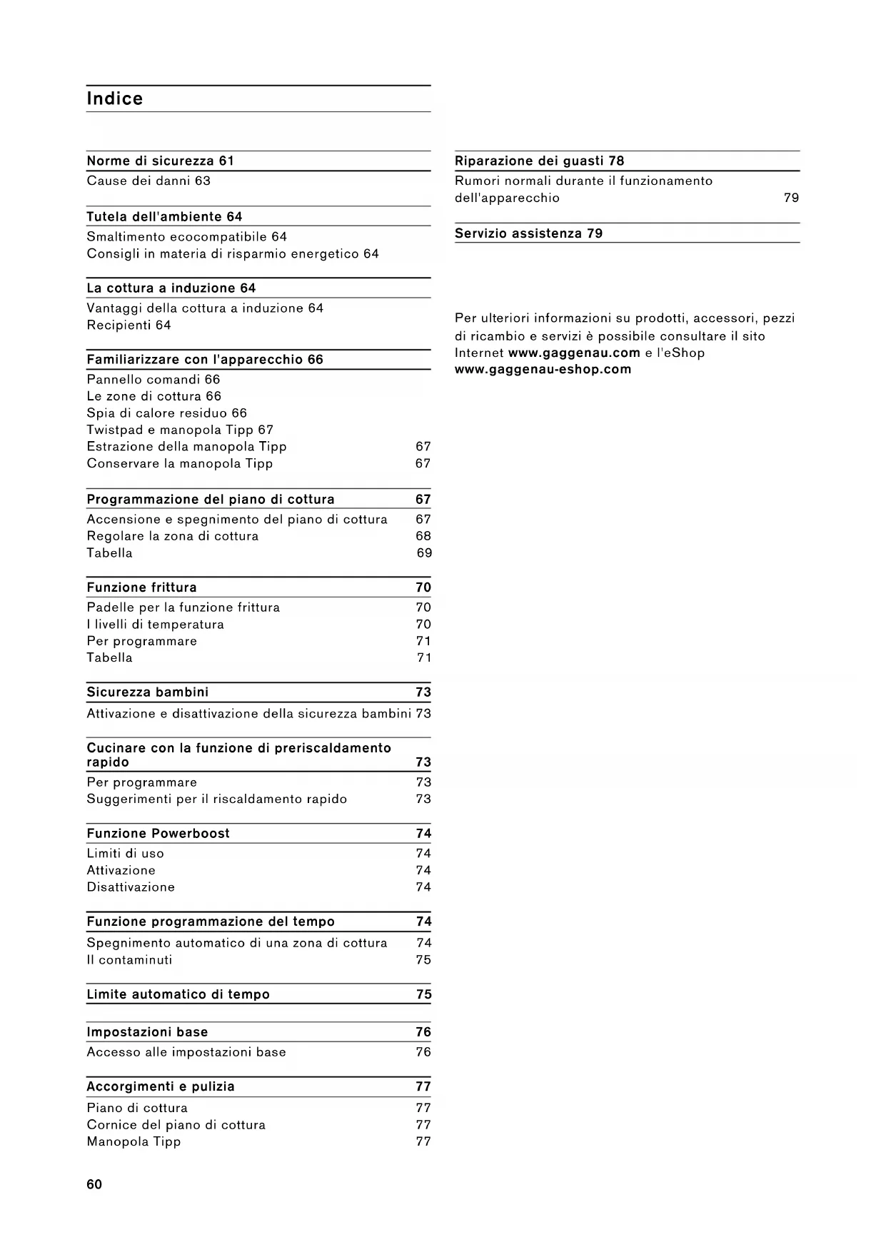 Per ulteriori informazioni su prodotti, accessori, pezioni di ricambio e servizi è possibile consultare il site Internet www.gaggenau.com e l'eShop