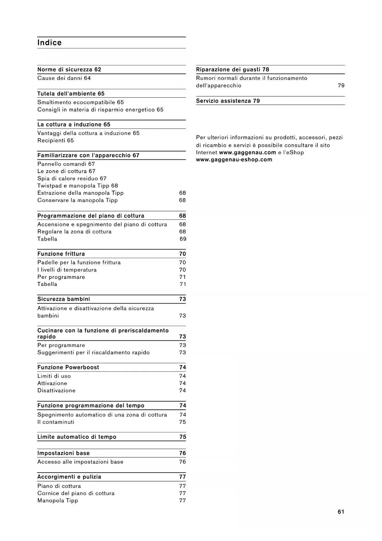 Per ulteriori informazioni su prodotti, accessori, pezioni di ricambio e servizi è possibile consultare il site Internet www.gaggenau.com e l'eShop www.gaggenau-eshop.com