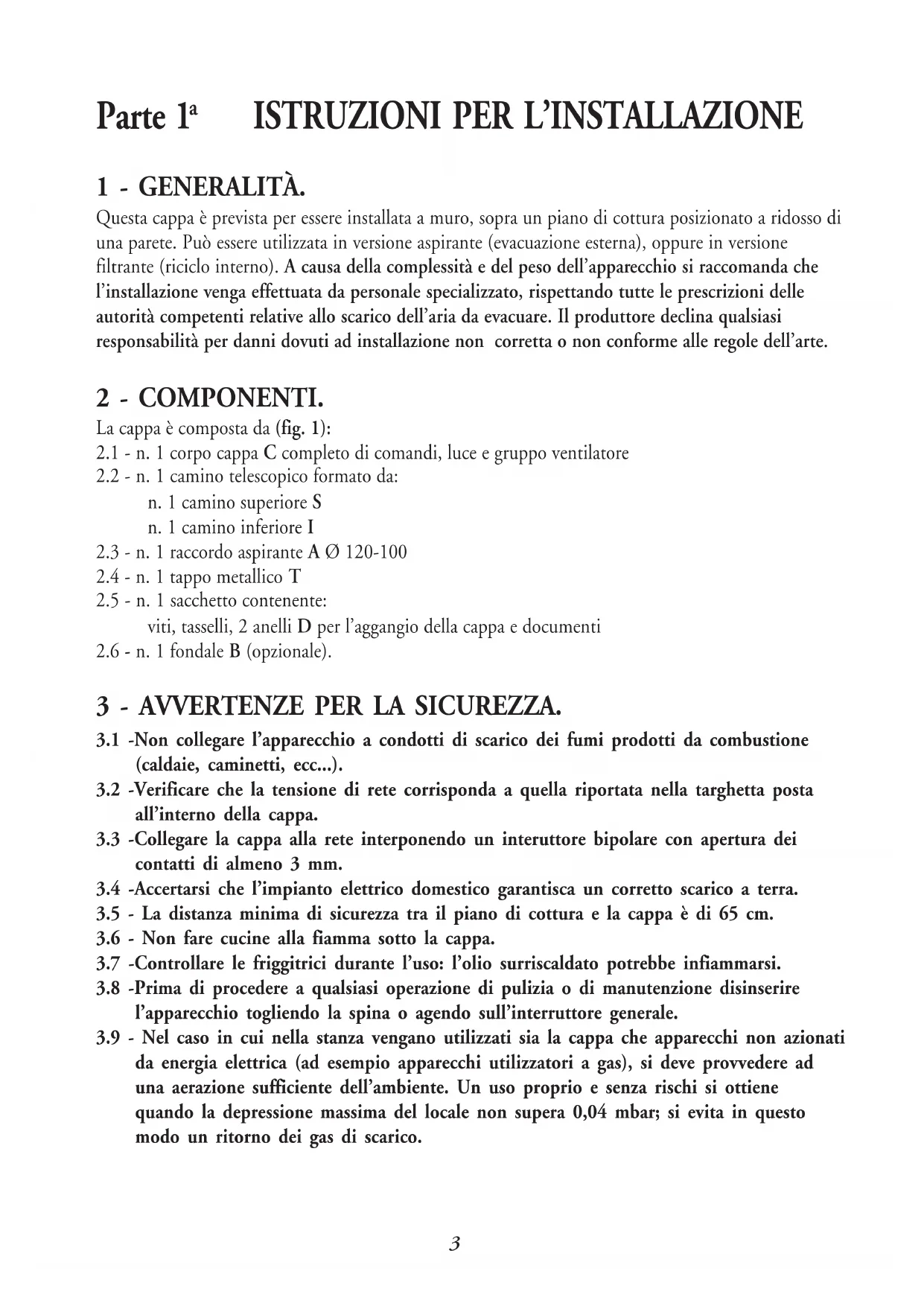 3 - AVVERTENZE PER LA SICUREZZA.