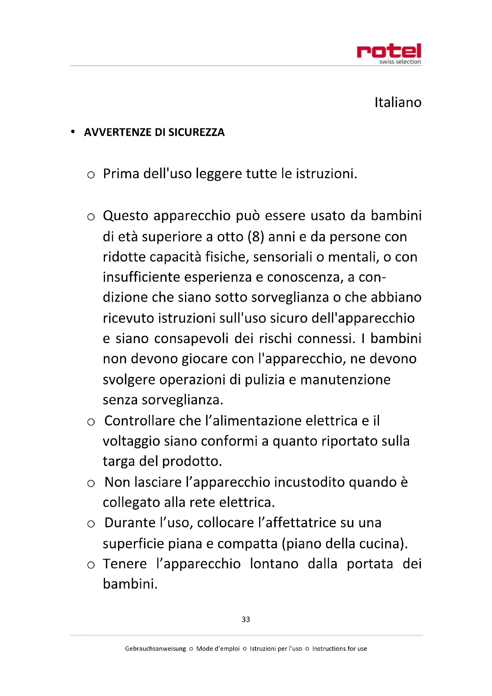 Per lo smaltimento corretto, la macchina deve essere restituita al rivenditore specializzato, al servizio di assistenza o alla ditta Rotel AG.