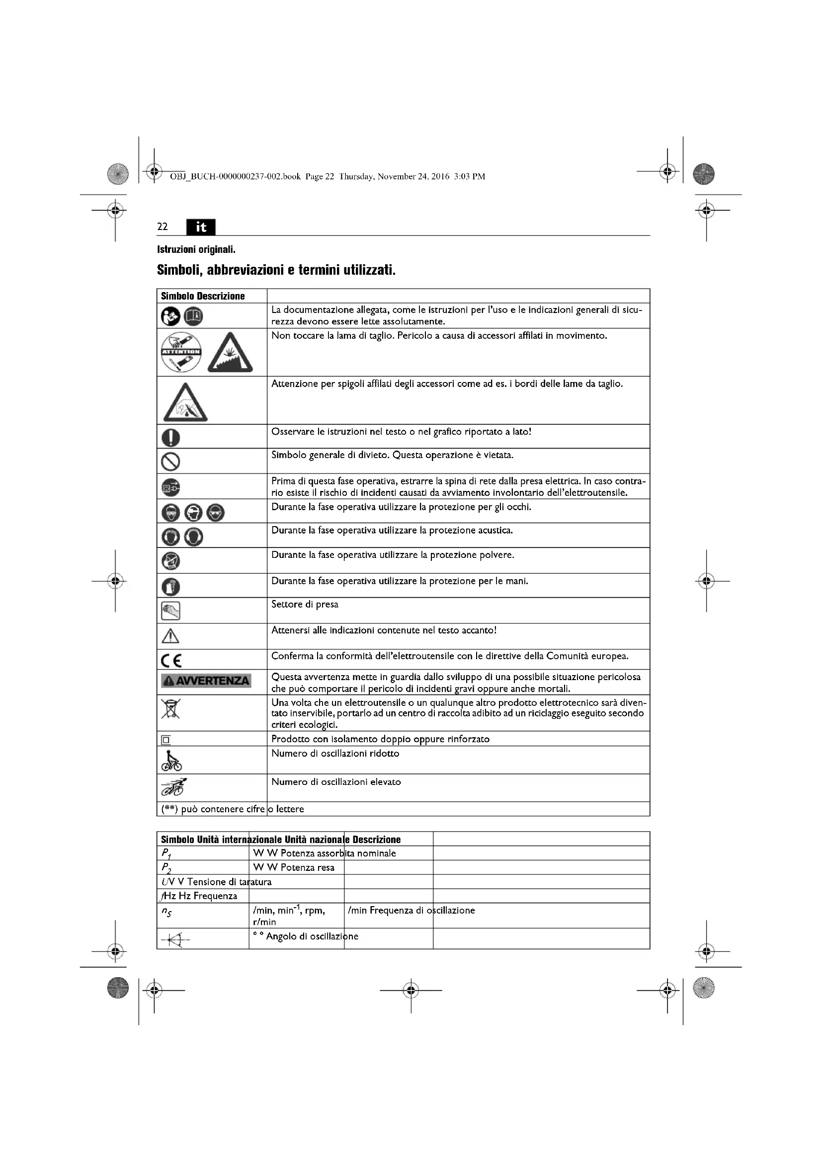 Non utilizzato il presente elettroutensile prima di aver letto e compreso accuramente e completenesse queste istruzioni per l'uso e le «Indicazioni