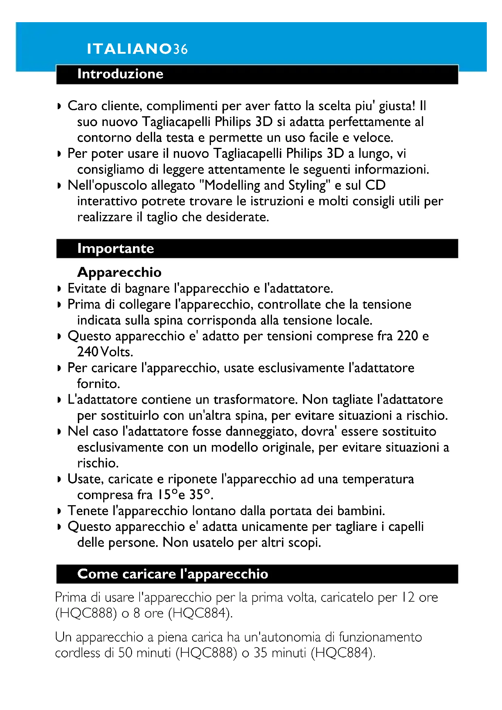 Trova gratuitamente il manuale del dispositivo HQC888 PHILIPS in formato PDF.