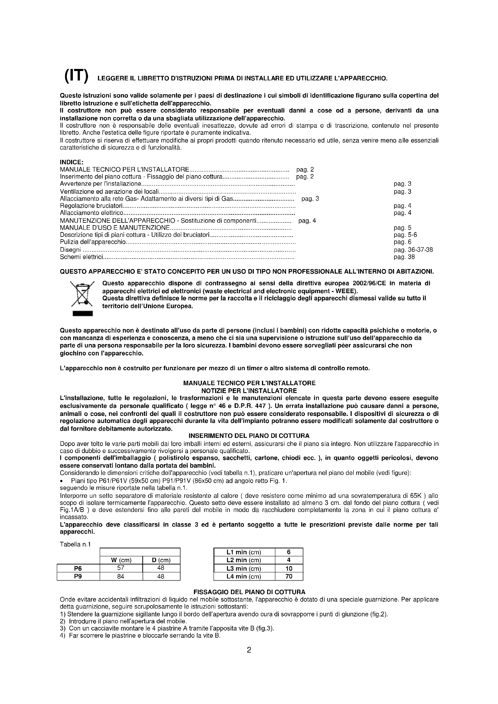 pagina. 2 ED USO DEI PIANI COTTURA DA INCASSO A GAS E MISTI