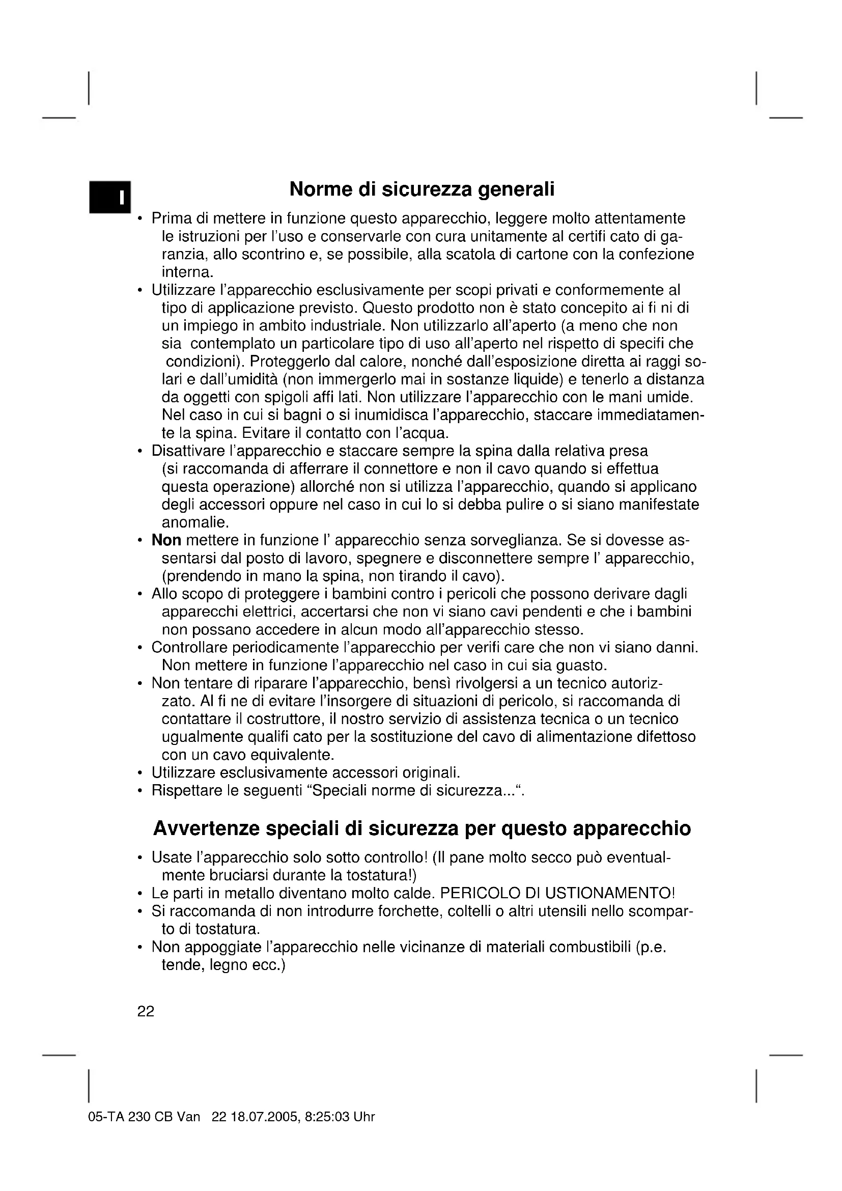 Rispettare le seguenti "Speciali norme di sicurezza...".