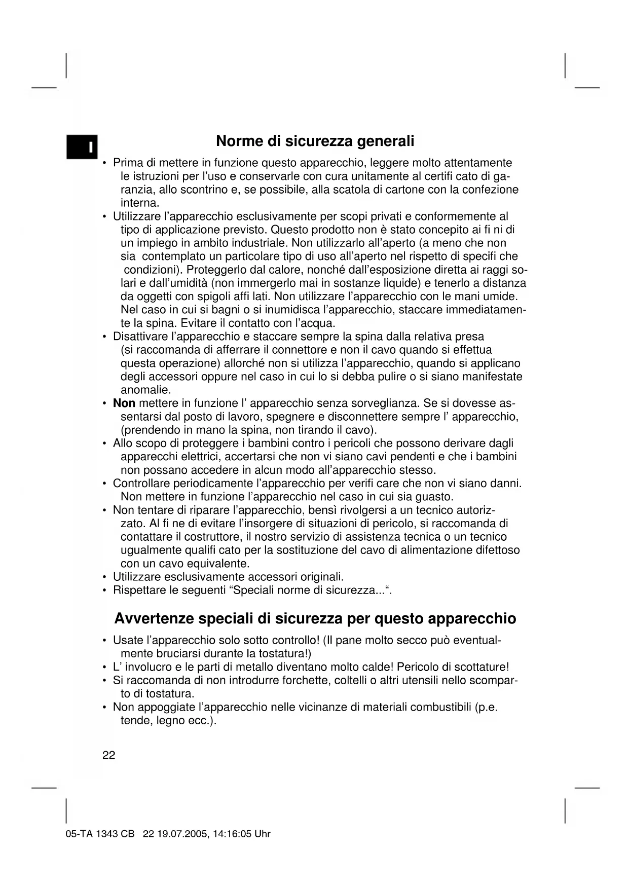 - Usate l'apparecchio solo sotto controllo! (Il pane molto secco può eventualmente bruciarsi durante la tostatura!)