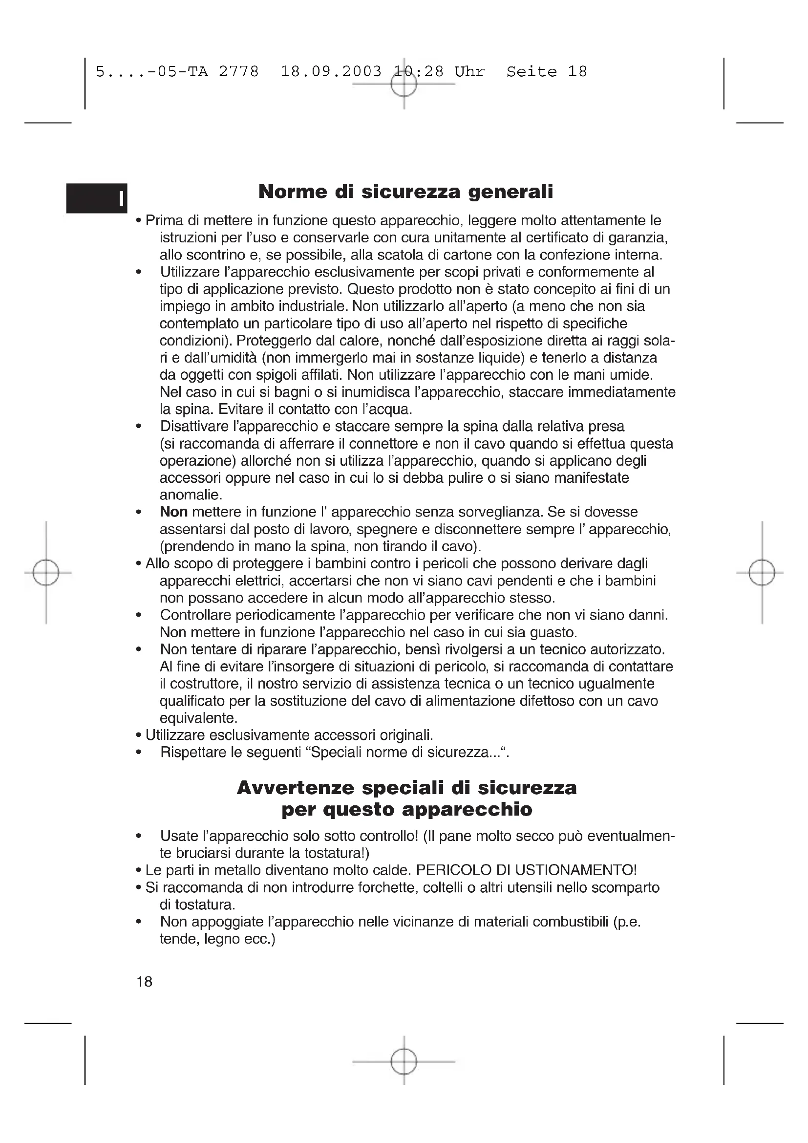 5....-05-TA 2778 18.09.2003 10:28 Uhr Seite 18Prima del primo uso Per togliere lo strato di protezione dalla spirale, sarebbe meglio attivare l’ appa- recchio ca. tre volte senza contenuto. Sciegliere il livello di doratura desiderato. Facendo questo è possibile che si formi un leggero fumo e odore. Arieggiare sufficientemente. Uso