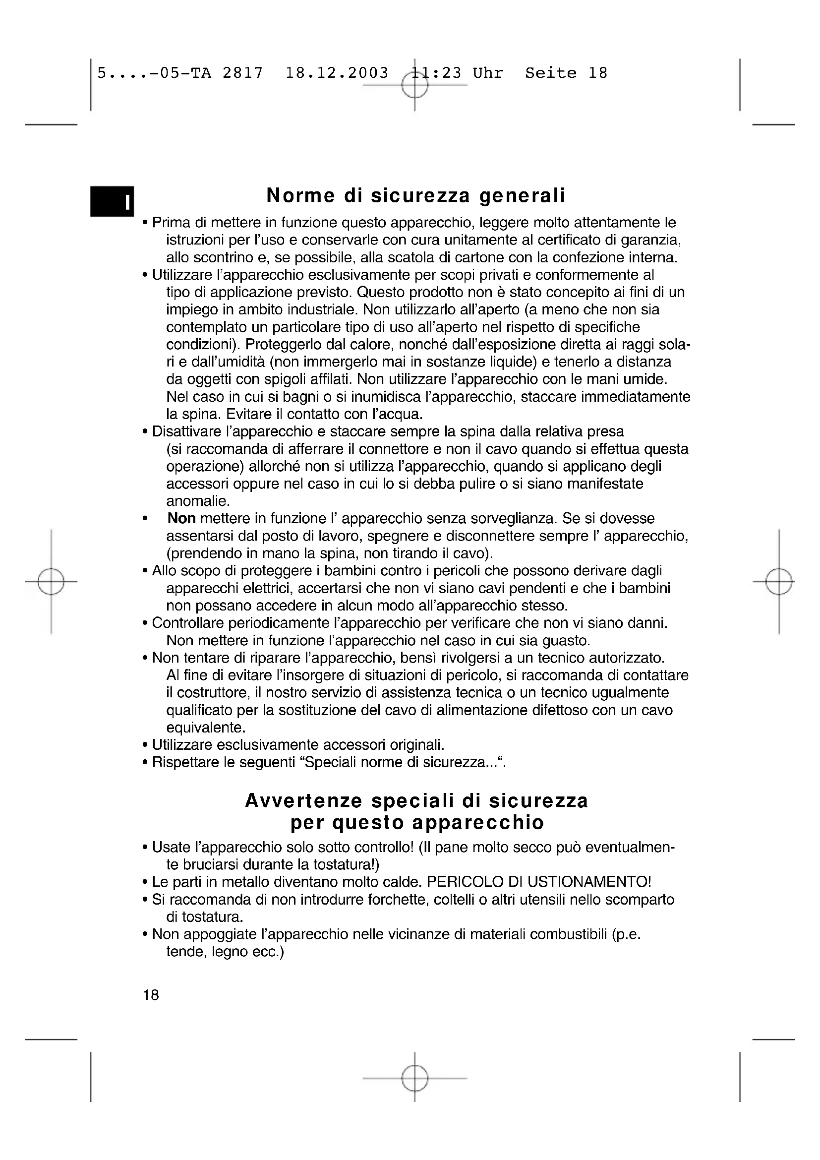 - Usate l'apparecchio solo sotto controllo! (Il pane molto secco può eventualmente bruciarsi durante la tostatura!)