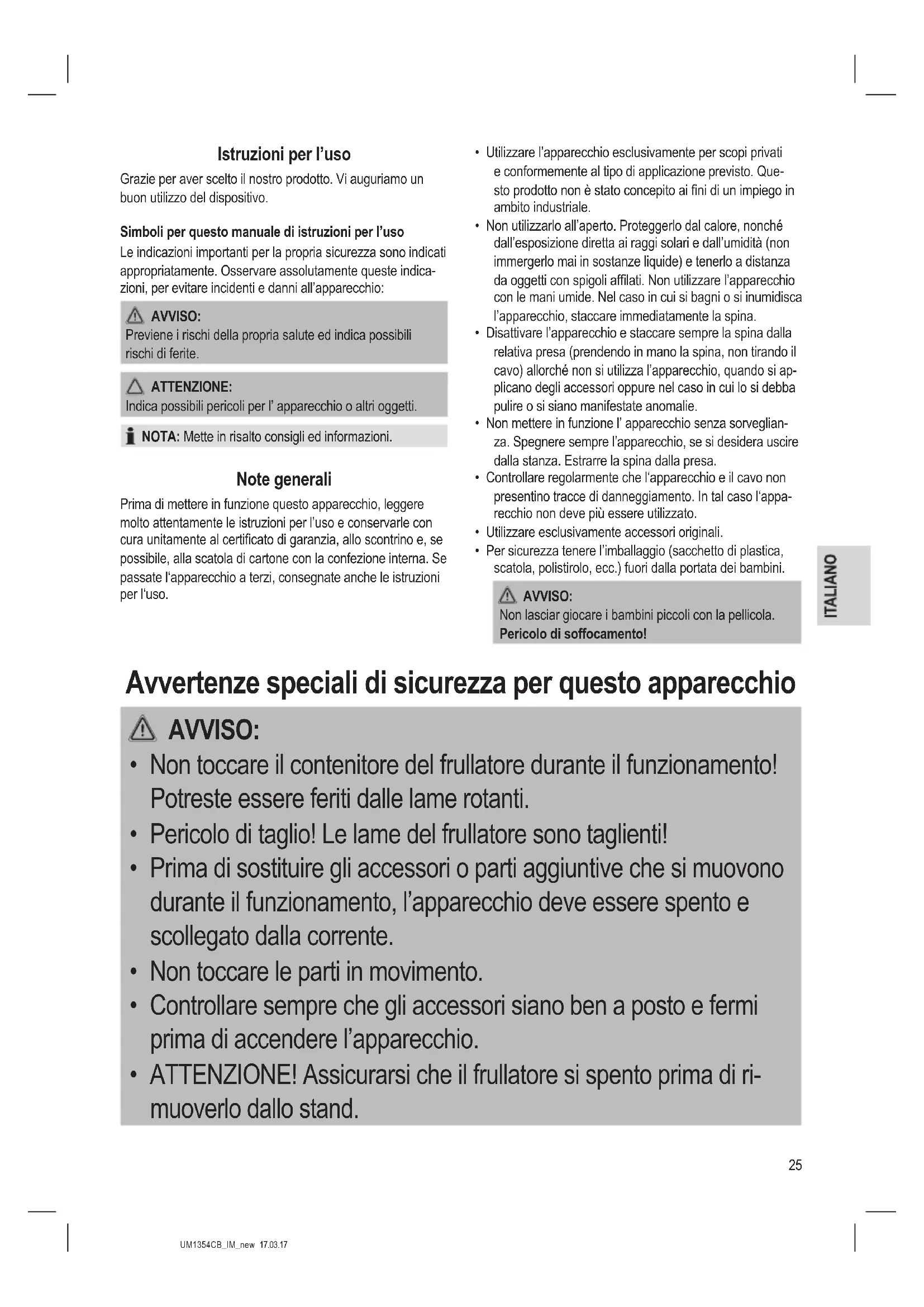 - ATTENZIONE! Assicurarsi che il frullatore si spento prima di ri- muoverlo dallo stand.26 UM1354CB_IM_new 17.03.17 AVVISO: