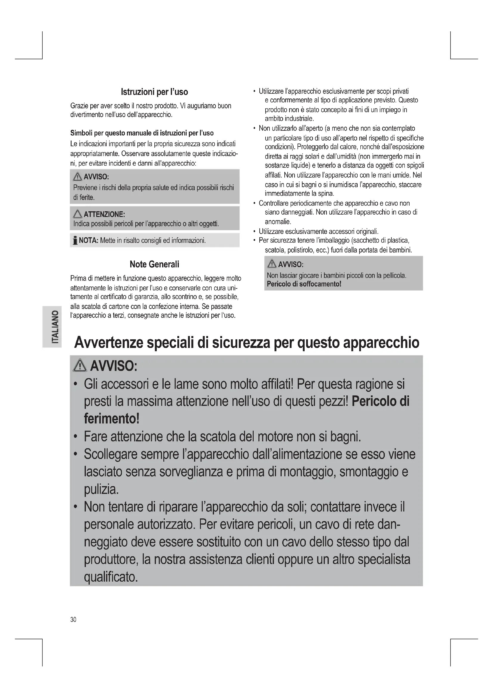- Gli accessori e le lame sono molto aflati! Per questa ragione si presti la massima attenzione nell’uso di questi pezzi! Pericolo di ferimento!