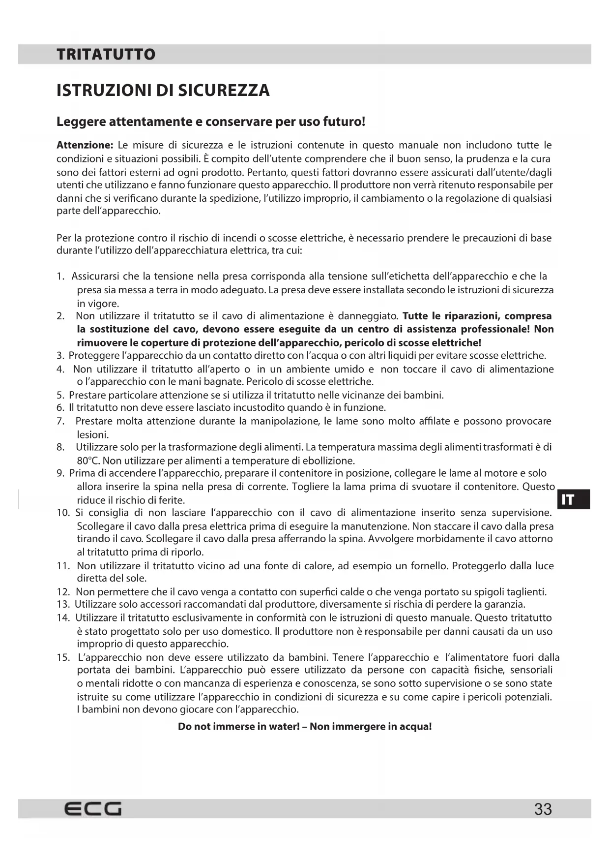 Do not immerse in water! - Non immershere in acquaal