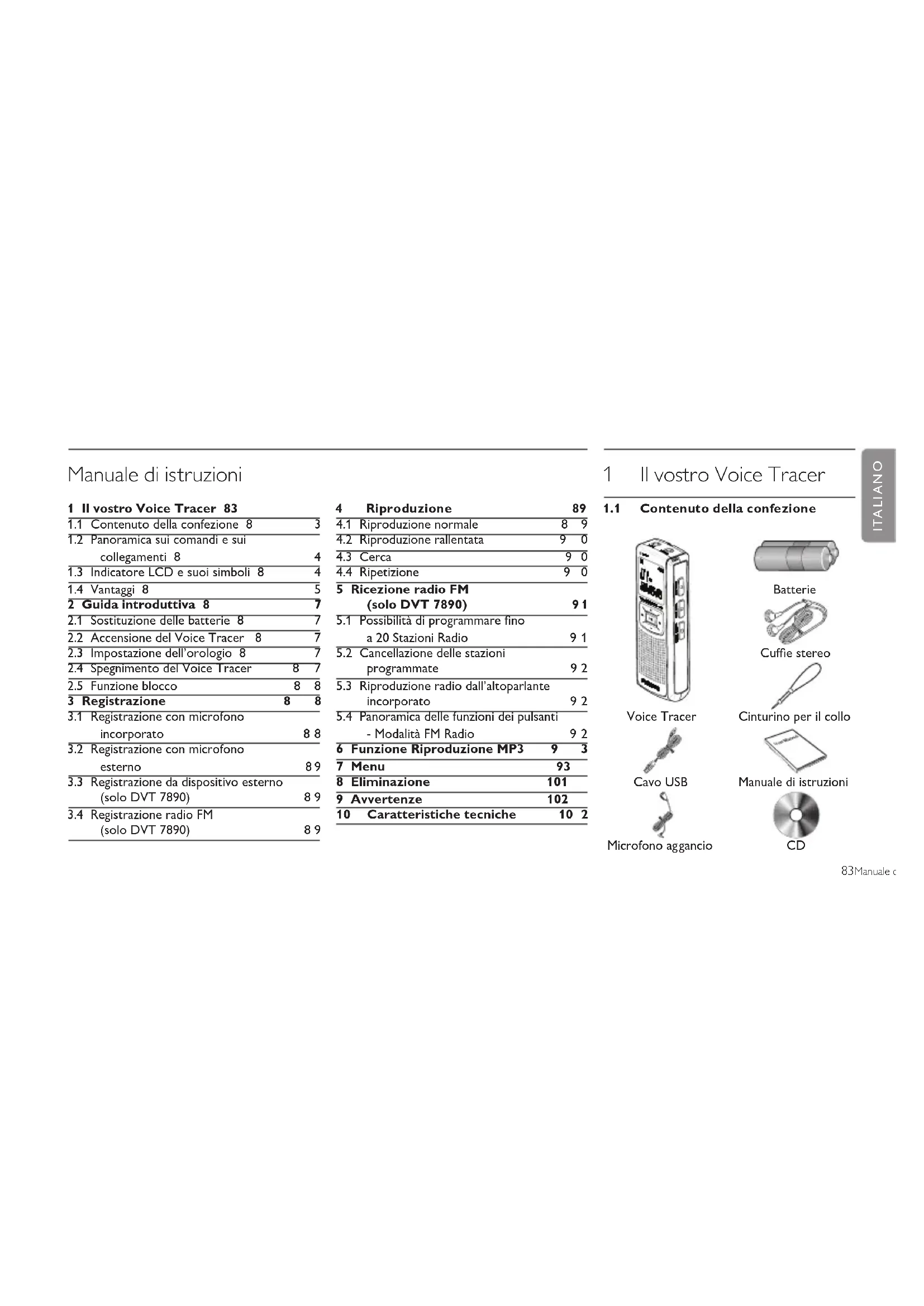 - 83Manuale di istruzioni 1 Il vostro Voice Tracer 83