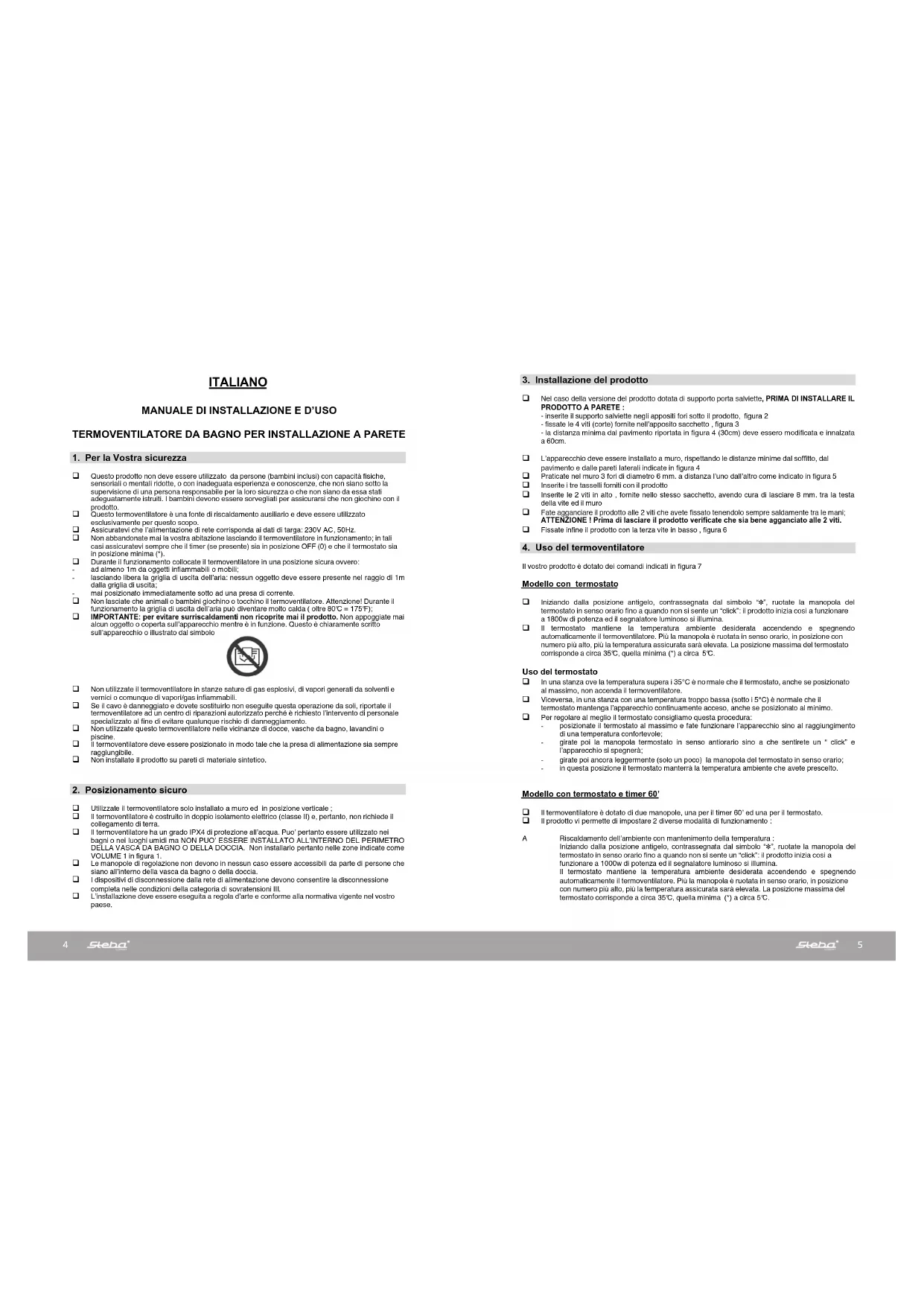 - Questo termenvilamellà è una fonte di riscaldamento aziuali e delve assure usizzato esclusivamente per questo scopo.