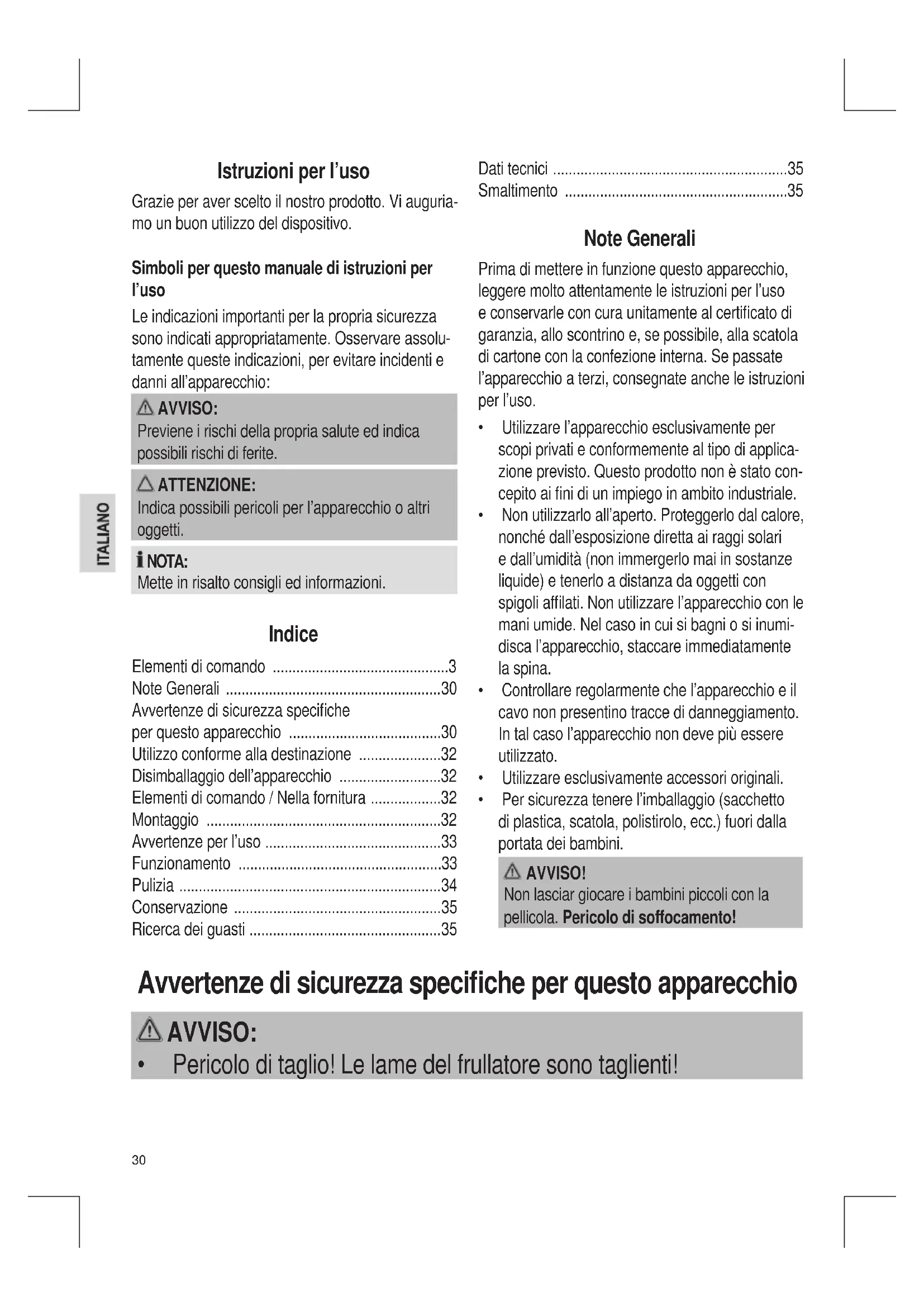 - Pericoloditaglio!Lelamedelfrullatoresonotaglienti!31 AVVISO: