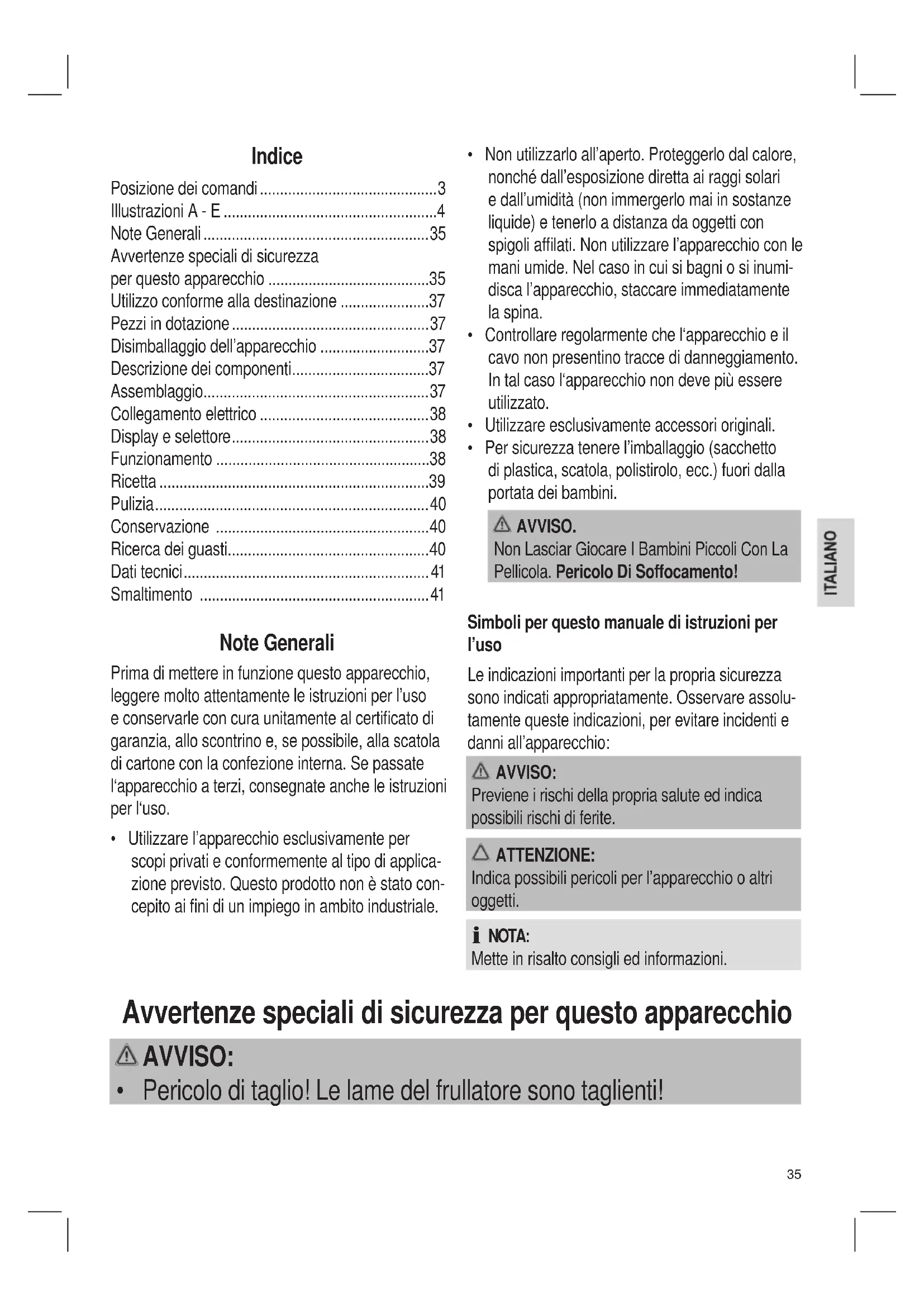 - Nonarrivareall’unitàdimiscelazione!Lelame sonoaflateeruotanoadaltavelocità.Posso- no verificarsi lesioni gravi.