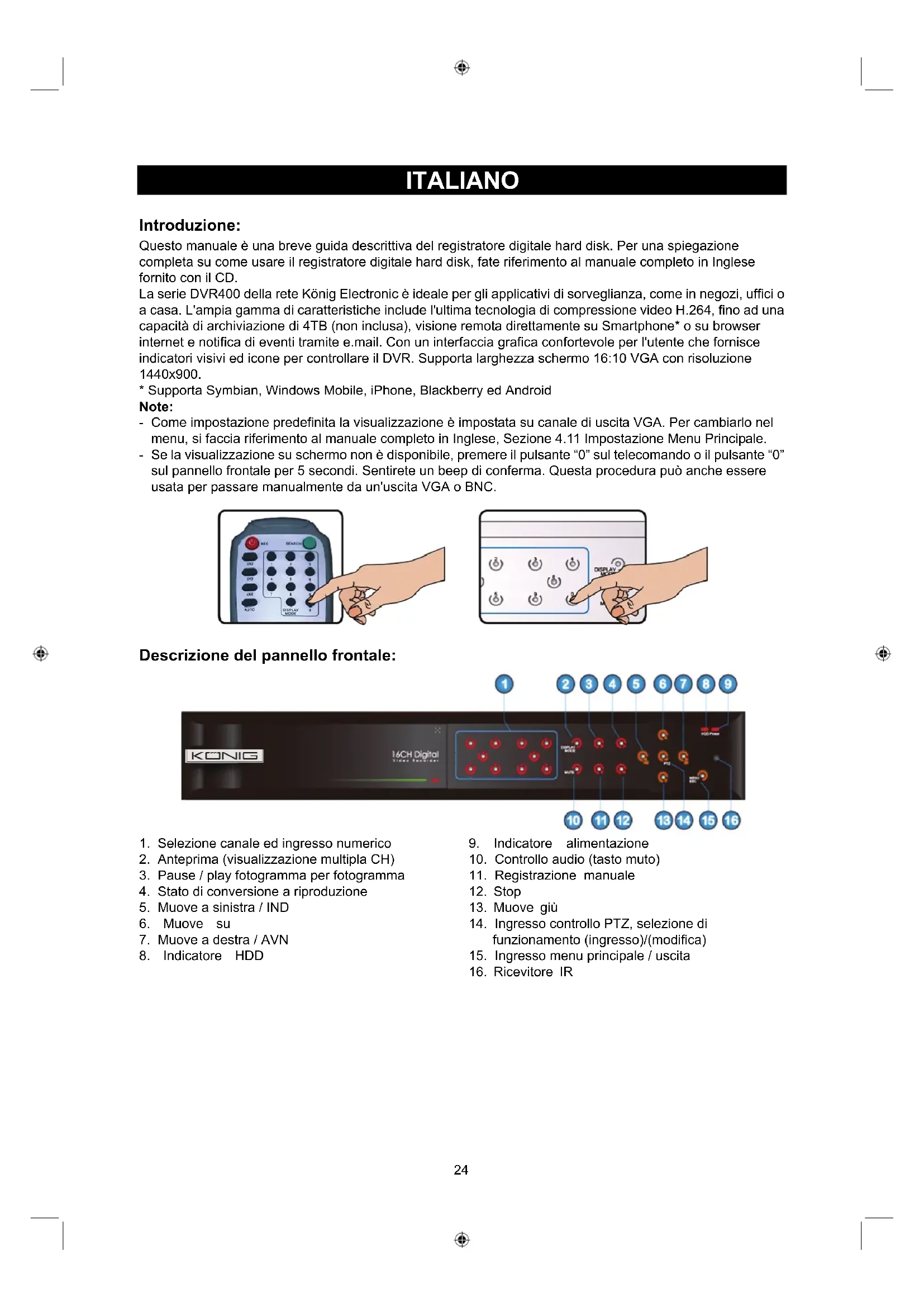 MANUALE UTENTE SECDVR416 KONIG