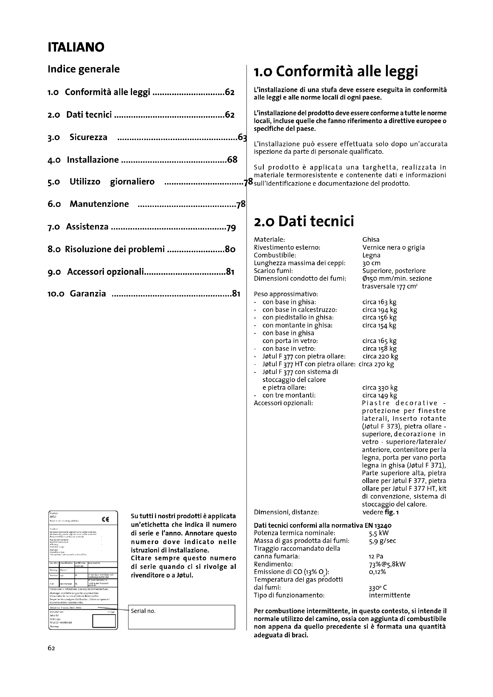 Citare sempre questo numero di serie quando ci si rivolge al rivenditore o a Jøtul.