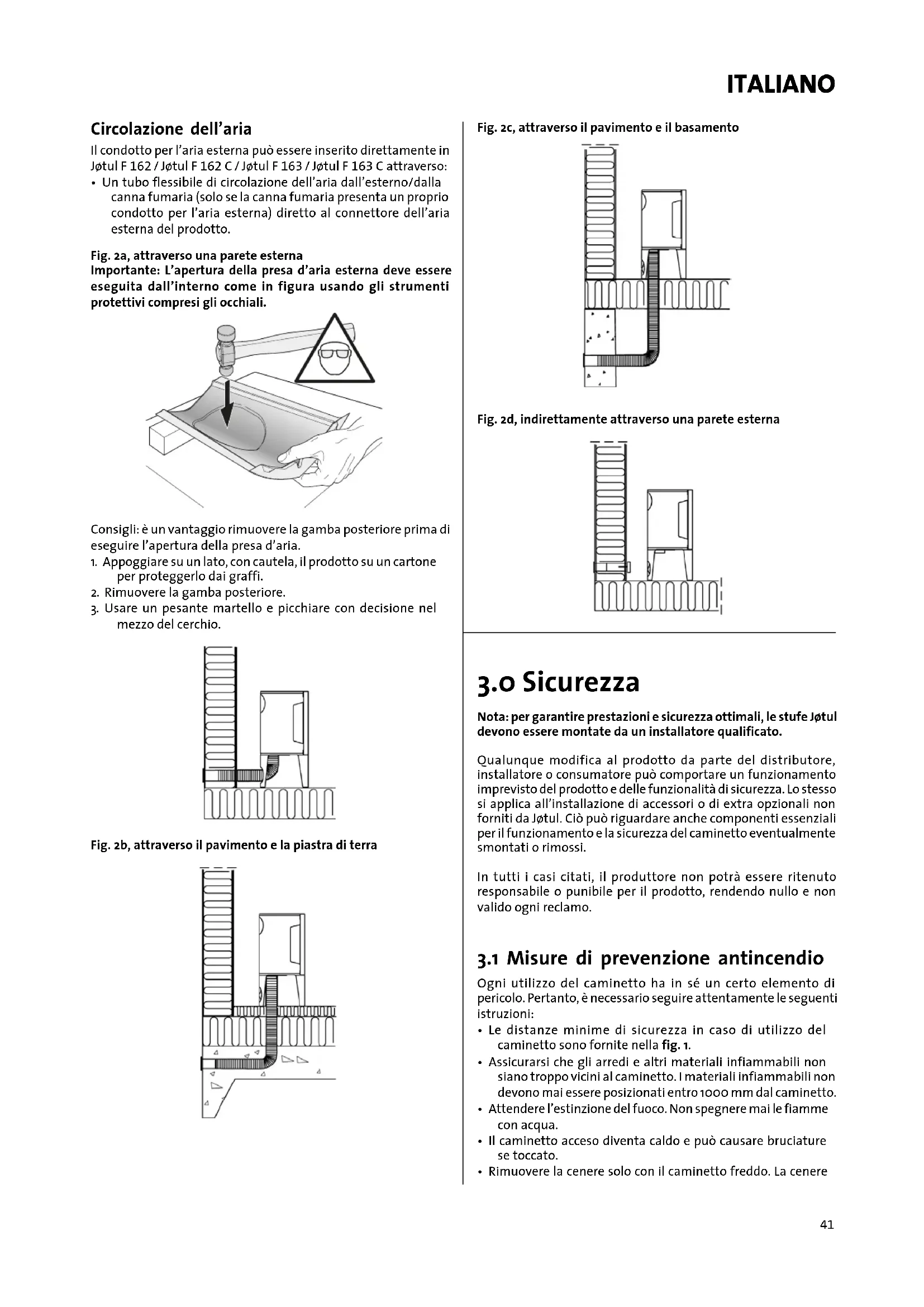 Nota: per garantire prestazioni e sicurezza ottimali, le stufe Jøtul devono essere montate da un installatore qualificato. Qualunque modifica al prodotto da parte del distributore, installatore o consumatore può comportare un funzionamento imprevisto del prodotto e delle funzionalità di sicurezza. Lo stesso si applica all’installazione di accessori o di extra opzionali non forniti da Jøtul. Ciò può riguardare anche componenti essenziali per il funzionamento e la sicurezza del caminetto eventualmente smontati o rimossi. In tutti i casi citati, il produttore non potrà essere ritenuto responsabile o punibile per il prodotto, rendendo nullo e non valido ogni reclamo.
