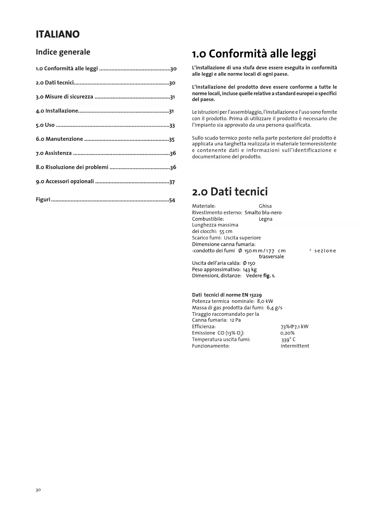 ): 0,20% Temperatura uscita fumi: 339° C Funzionamento: intermittent ITALIANO31