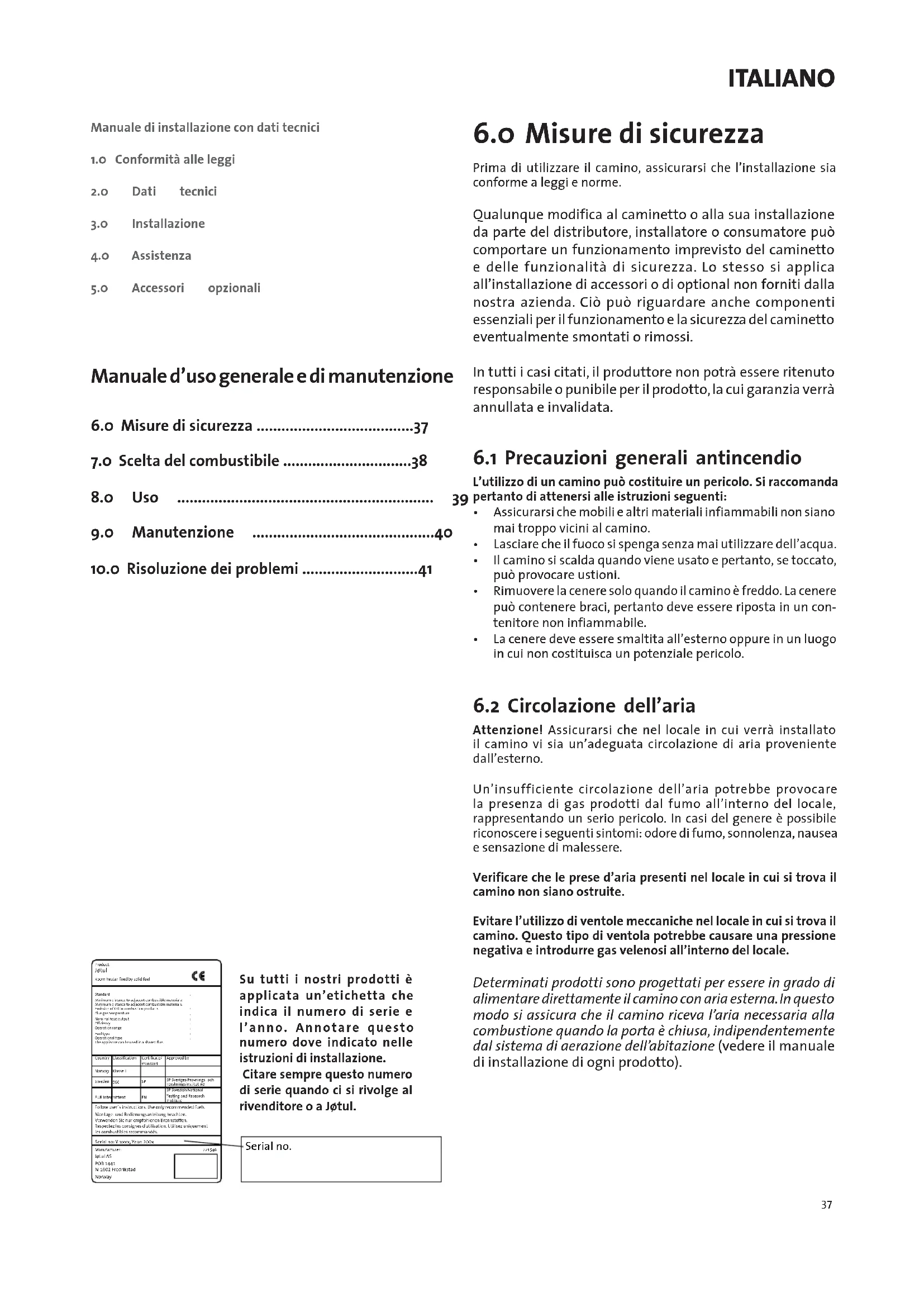 Su tutti i nostri prodotti è applicata un'etichetta che indica il numero di serie e l'anno. Annotare questo numero dove individato nelle istruzioni di INSTALLazione. Citare sempre questo numero di serieso quando ci si rivolge al rivenditore o a Jotul.