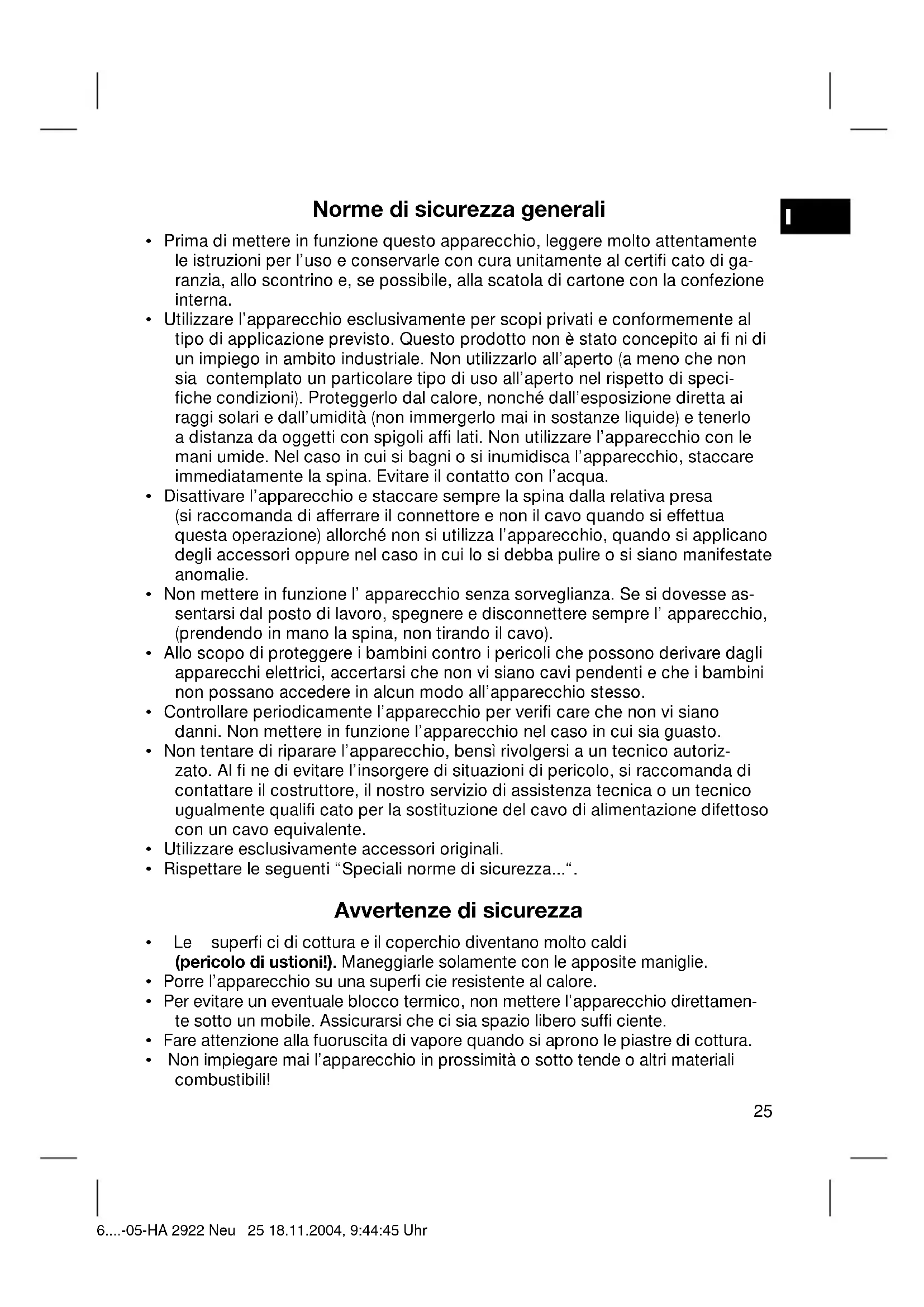 - Non impiegare mai l’apparecchio in prossimità o sotto tende o altri materiali combustibili! 6....-05-HA 2922 Neu 25 18.11.2004, 9:44:45 UhrI