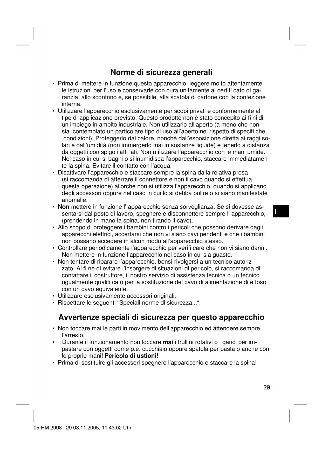 - Prima di sostituire gli accessori spegnere l’apparecchio e staccare la spina! 05-HM 2998 29 03.11.2005, 11:43:02 UhrI