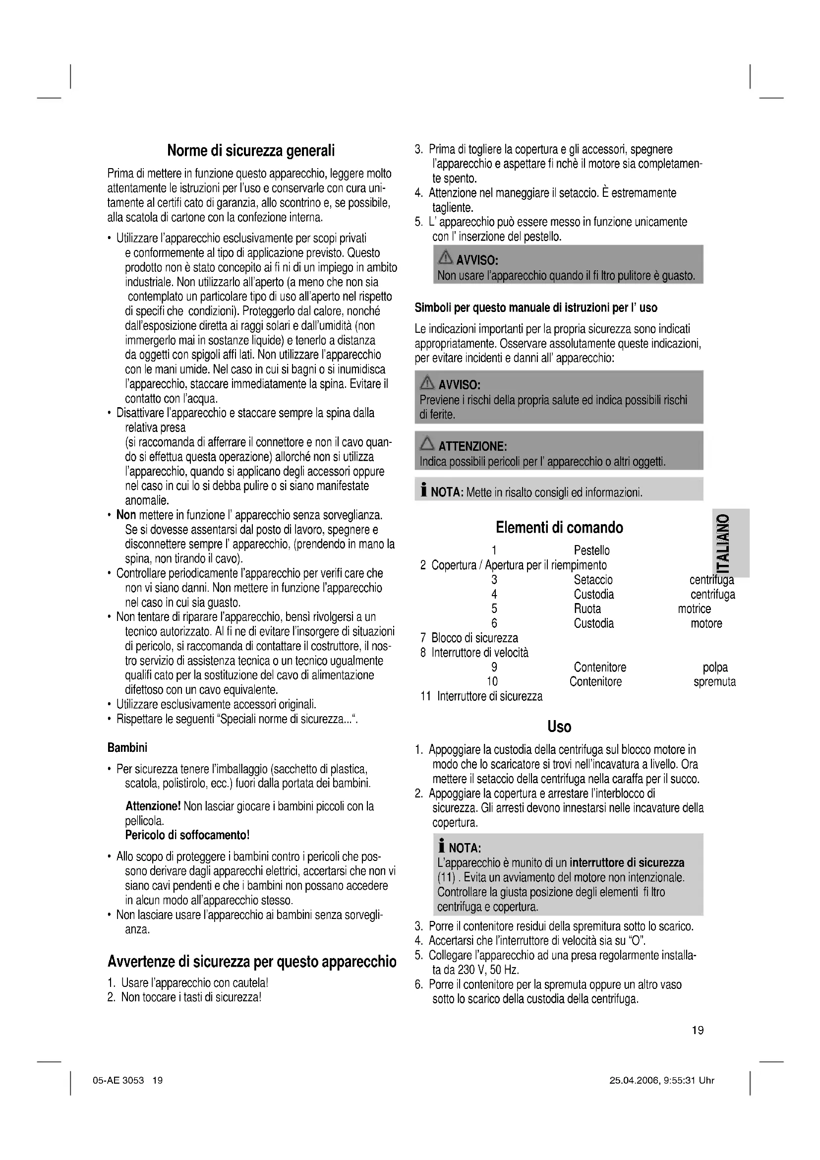 AE 3053 - Estrattore di succo CLATRONIC - Manuale utente e istruzioni gratuiti