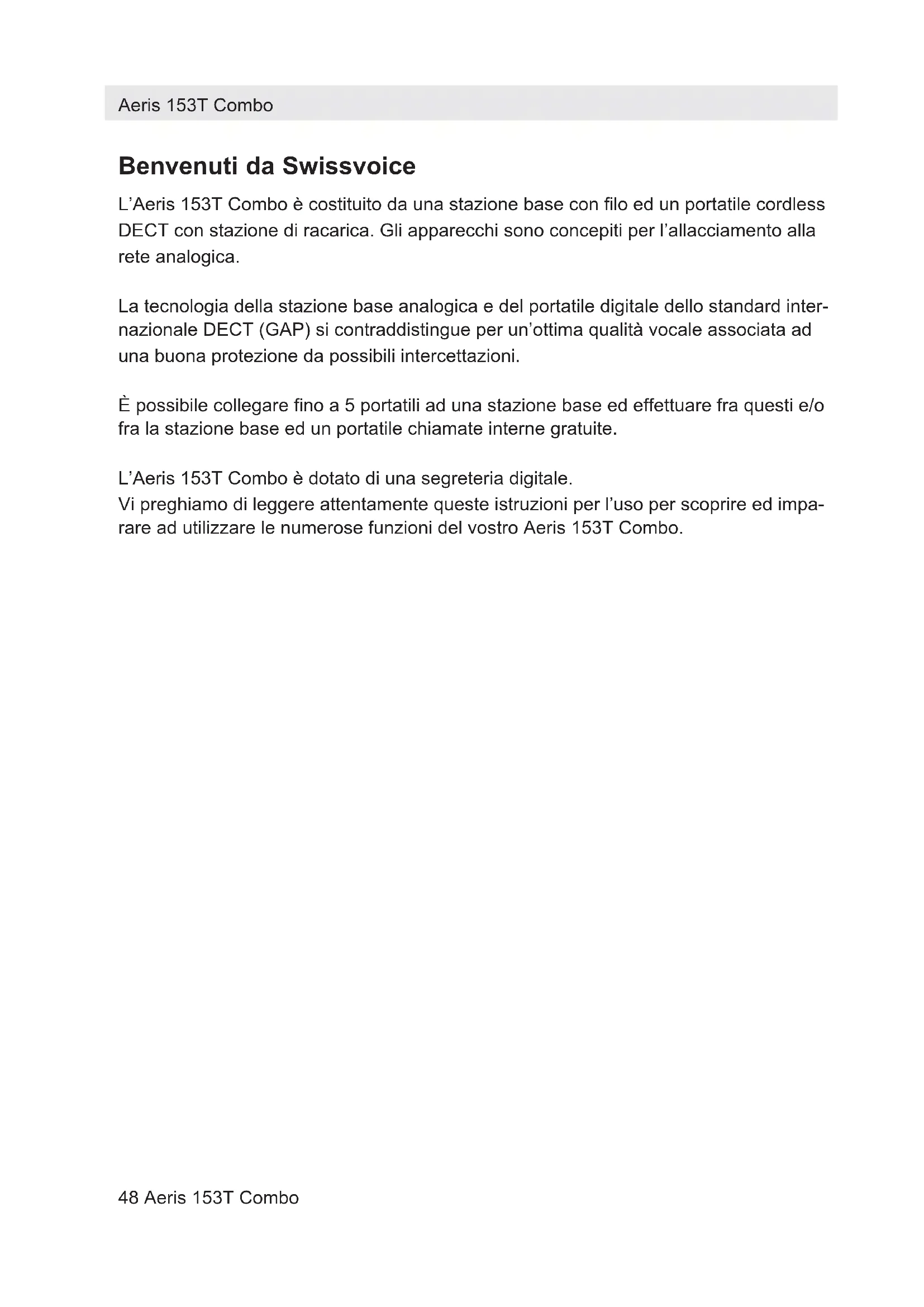 MANUALE UTENTE Aeris 153T SWISSVOICE
